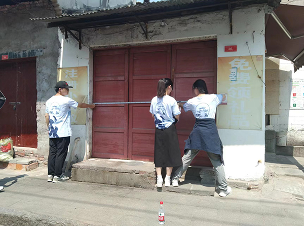 调研中,工作坊成员对三义街居民进行走访,询问当地居民对于古城改造的意愿与建议,并对街区历史古建筑进行测绘,收集相关数据尺寸。之后,工作坊成员去到三义街社区居委会,并与相关人员进行讨论。居委会工作人员表示希望积极开展学校员工与社区居民之间联动合作,并为工作坊成员提供历史文化街区修复与改造建议和相关资料。