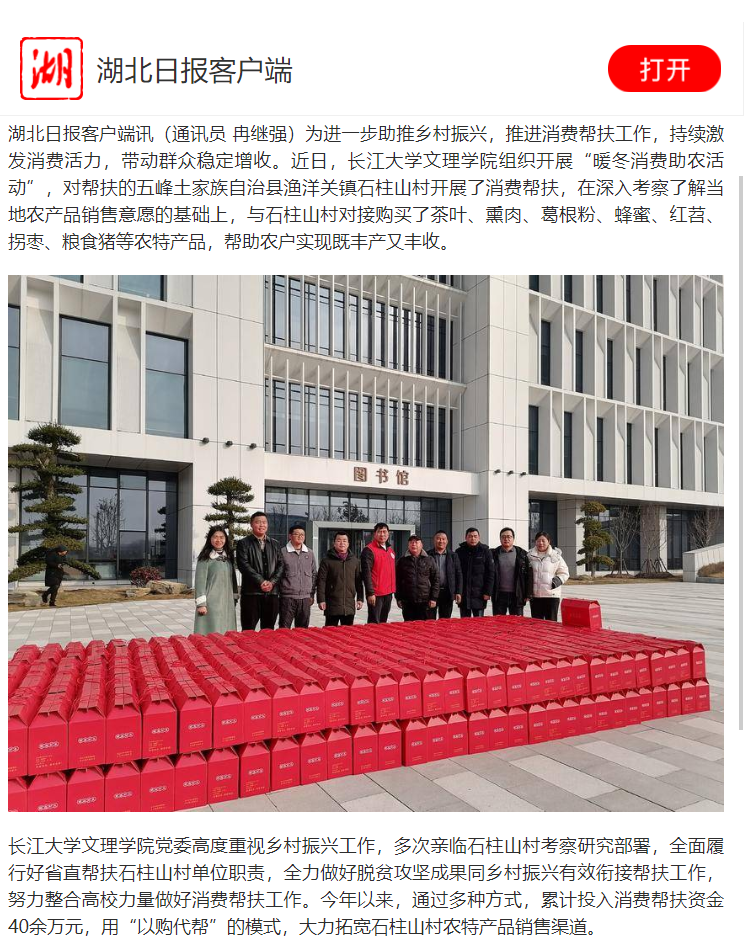 下一步,伟德国际1946源于英国将继续推动巩固拓展脱贫攻坚成果同乡村振兴有效衔接工作落到实处,学院将发挥党建、科技和人才资源等优势,助力石柱山村在产业振兴、文化振兴、生态振兴、组织振兴上取得实效。利用暑期“三下乡”开展支教、推普、关爱老人等丰富多彩的社会实践活动,助力乡村振兴,弘扬文明乡风;在满足师生日常需求的前提下,有针对性采购部分农副产品;相关教学单位利用专业优势,助力石柱山村农产品品质、包装升级,借助电商平台拓展销售渠道,线上线下相结合助力经济发展。多措并举共同破解村集体经济发展瓶颈。并结合农户实际开展消费帮扶活动,以“线上+线下”多渠道模式,调动全社会力量全面助力农产品销售,不断凝聚助力乡村振兴的高校力量。