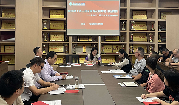 连日来,由马克思主义学院副教授田丹、丁风岭、佘时珍、史苗苗等人组成的理论宣讲团分别深入信息与机电工程学院、人文与传媒学院、建筑与设计学院、外国语学院、教育与心理学院、管理学院等单位开展学习贯彻党的二十届三中全会精神宣讲。宣讲团成员围绕习近平总书记关于进一步全面深化改革的一系列新思想、新观点、新论断进行解读,同时结合学校实际,引导广大干部师生积极将学习成果转化为推动实践的支撑与动力。(图文由各教学单位提供)