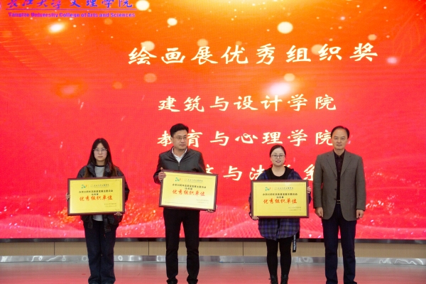 李则俊宣读表彰文件,3个教学单位及600余名员工分别在绘画作品展、主题大会、文艺汇演等多个活动中表现优异,其中建筑与设计学院、教育与心理学院和经济与法学系荣获绘画展优秀组织奖,唐丹等274名同学的绘画作品分获一、二、三等奖;陈晨等229名同学在文艺汇演活动中荣获“最佳编排奖、最佳表演奖”等称号;周振等137名同学在各项活动中认真负责,荣获“优秀工作人员”称号。校领导和各职能部门负责人分别为优秀代表颁奖。