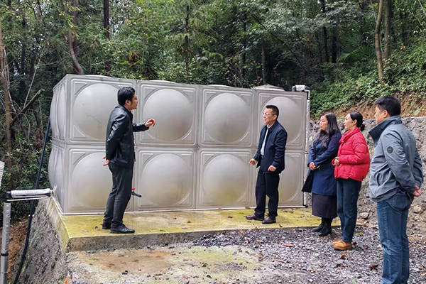 在基础设施与民生项目现场,颜建洲一行实地查看了学校今年帮扶的“亮灯工程”三期、“同心守望” 智慧养老平台、入户路及产业路硬化、应急水源供应点等项目的建设、管理使用情况。自2023年以来,学校帮扶建设的三期“亮灯工程”共累计安装路灯65 盏,不仅照亮村民夜间出行路,更让文化广场成为村民开展广场舞、球类运动的夜间活动阵地。今年新建的“同心守望”智慧养老平台,目前共设置25个监测点,整合健康监测、紧急呼叫、助餐助医功能于一体,实现对独居老人、病疾人员等特殊群体的全时段、无死角关爱。