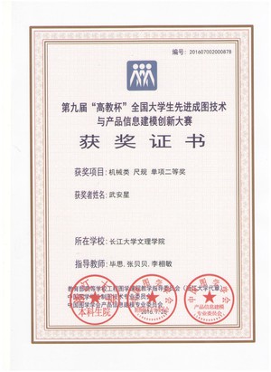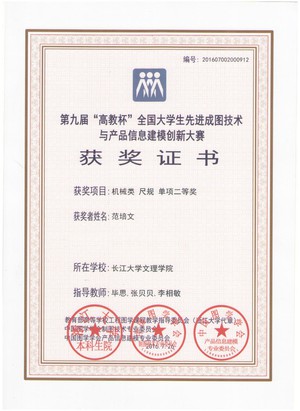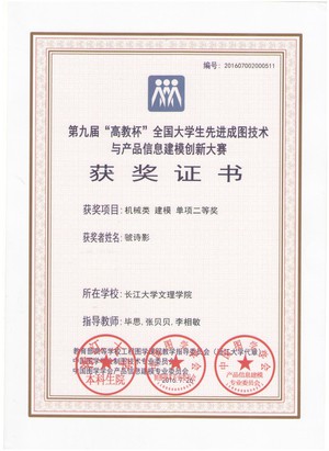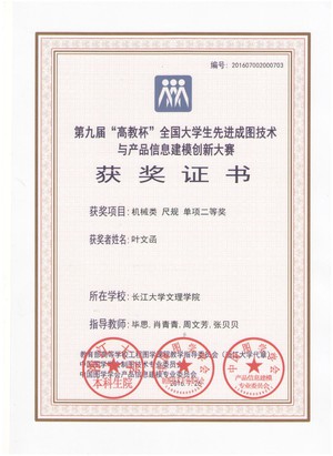 此次为公司首次参赛,为做好大赛工作,机电与信息工程系精心组织、积极准备,机械5131班虢诗影、范培文、武安星,机械5141班周宇、胡国栋组成的参赛团队获机械类工业产品设计二等奖。同时,虢诗影获个人建模二等奖,范培文、武安星、周宇、胡国栋分获个人尺规单项二等奖,电工5141班叶文函、刘坚获个人尺规单项二等奖。