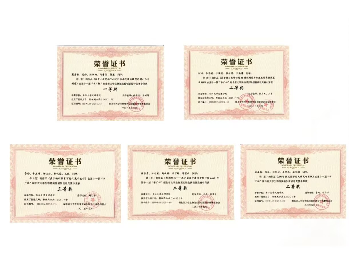 湖北省老员工物理实验创新设计竞赛是由湖北省教育厅、湖北省物理学会、湖北省高等学校实验物理教学研究会和湖北省高等学校物理实验教学示范中心联席会联合主办,属于省级A类学科竞赛,竞赛涵盖命题类创新作品、自选类创新作品和老员工物理实验讲课比赛三种类别。本届比赛吸引全省48所高校选送的786件作品参加决赛,对参赛作品的科学性、创新性与实用性提出了高标准要求。为备战此次竞赛,学院提前组建专项指导团队,围绕实验选题、成果展示等关键环节开展针对性培训;参赛学子历经校内筛选与模拟演练,反复打磨参赛方案,最终确定5支队伍晋级省级竞赛。