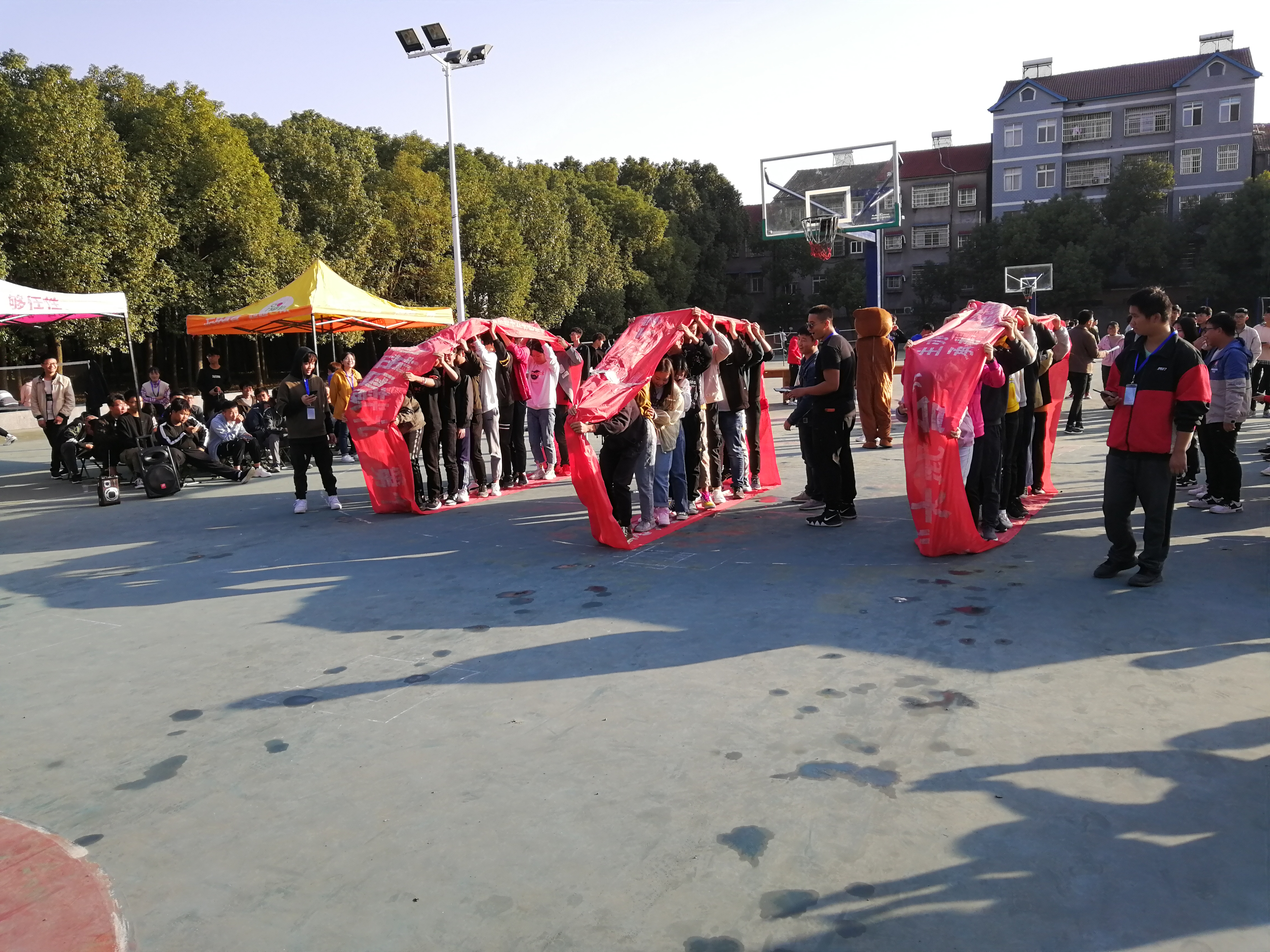 本次心理健康教育户外团辅活动是十一月心理文化宣传月系列活动重要内容,以班级为单位开展活动,共设置了“无敌风火轮”、“人椅”、“衔纸杯传水”、“缩圈”四个创意比赛项目,并由我系心灵驿站承办,具体由团总支员工会及志愿者服务队全体成员一同组织、策划、实施。