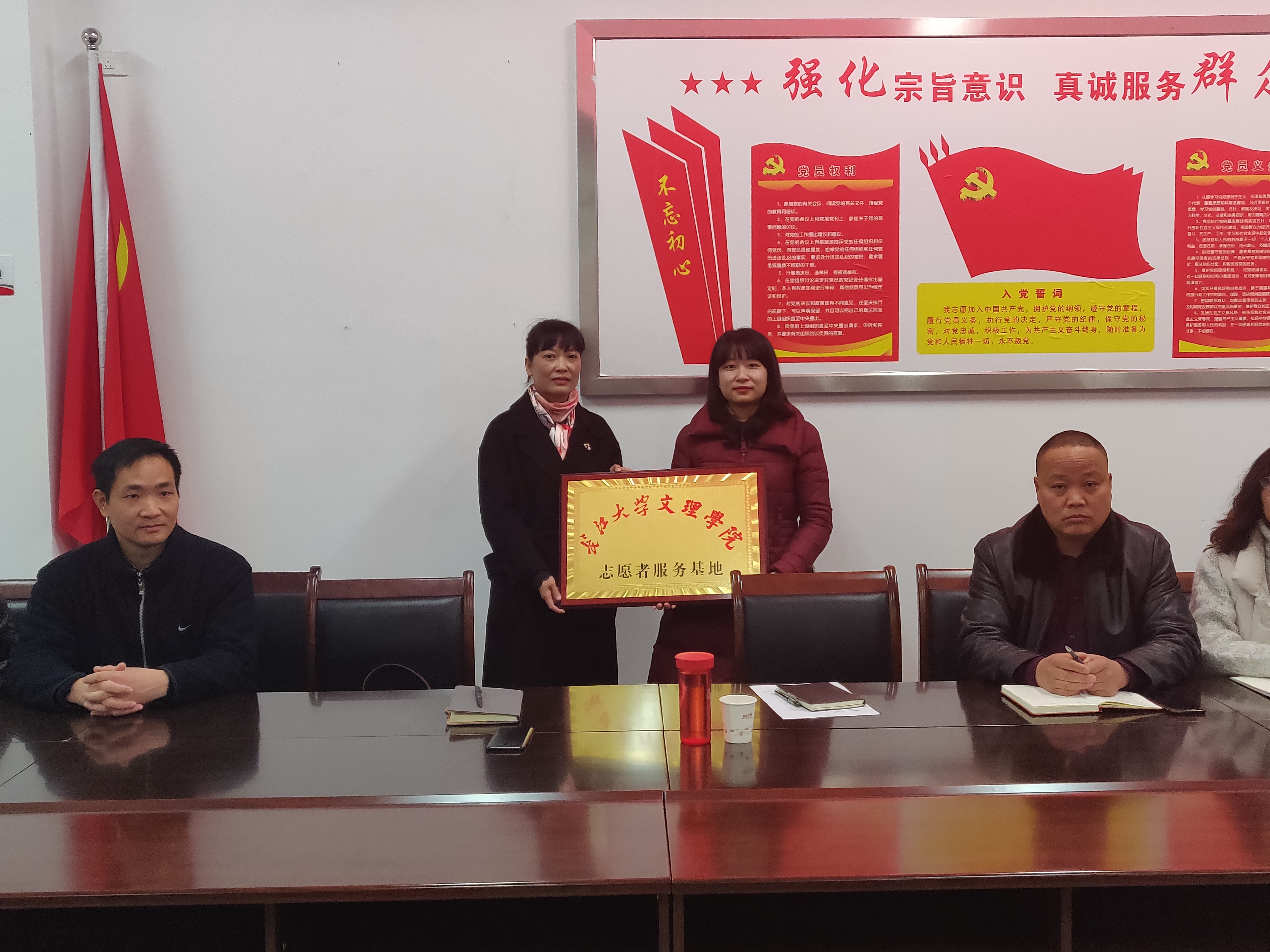 接着,吴海良与徐永会签订志愿者服务基地协议书,罗婷与徐永会进行授牌仪式。