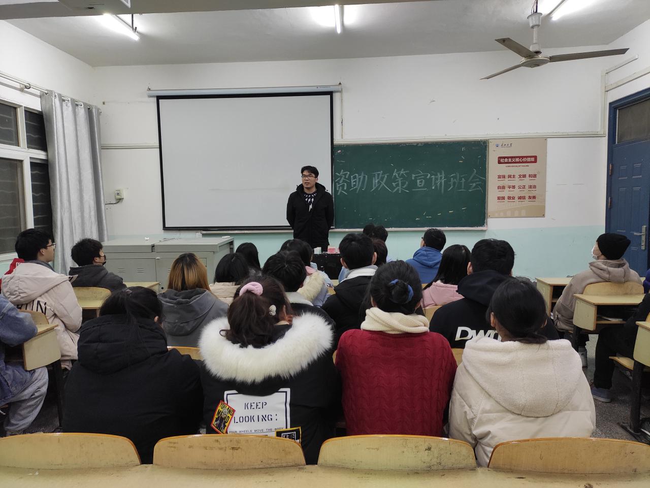 本网讯(员工记者 黄懿萱)为全面落实国家资助政策,建立健全员工资助制度,让我系学子进一步了解和明确国家和学院的各项资助政策。近日,在西校区自习室,我系召开资助政策宣讲班会,本次班会由各班班长主持,辅导员成观雄、陈质晶、燕梦蝶出席,班级全体同学参与。