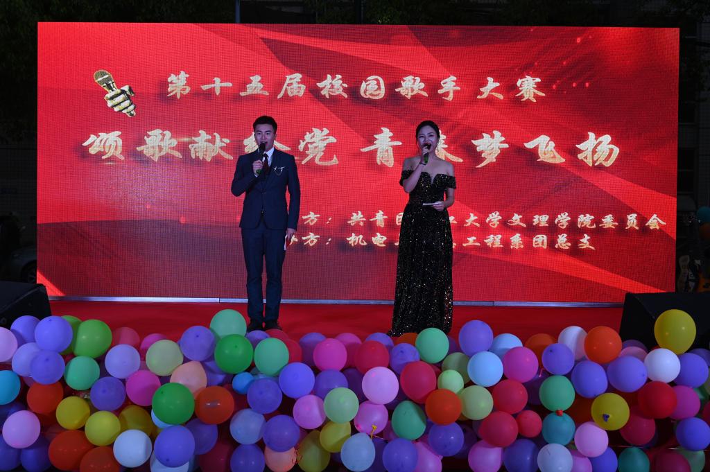 本网讯(员工记者 常伟)5月20日晚七点,在公司西校区篮球场,由我系承办的第十五届“泮池五月风”科技文化节之“颂歌献给党 青春梦飞扬”校园歌手大赛”闭幕式暨颁奖典礼隆重举行。公司党委书记朱继平、副经理尹家经、党委副书记孙细望、经理助理郭明虎及各单位相关负责人出席观看。本次特邀熊慧、王琳、程悦三位专业老师担任评委,国贸5181班韩立、广电5171班唐家璇主持。