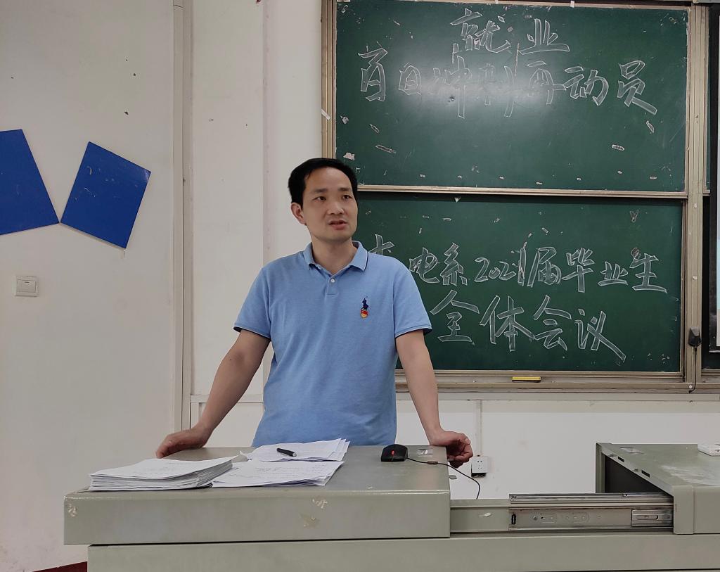 本网讯(员工记者 周晶晶)5月26日下午,在西校区四教200教室,我系召开以“就业百日冲刺再动员”为主题的2021届毕业生全体会议。党总支书记吴海良,辅导员陈质晶、成观雄、燕梦蝶出席,2021届全体毕业生参加,会议由系党总支副书记辛裕主持。