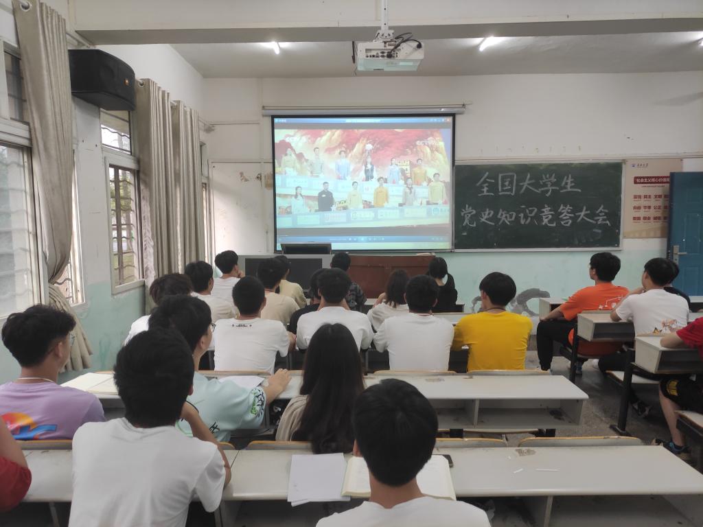 直播开始,同学们通过观看党史知识竞答、红色歌舞表演及红色影视片段,聆听教授们的精彩解析和先辈们的革命故事,重温了我党的艰苦岁月和革命先辈们的顽强拼搏。在观看党史竞答环节时,同学们相互交流,相互学习,在紧张激烈的比拼中提升自身党史知识水平。