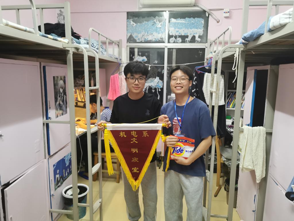 活动过程中,员工干部每周定时定点对各个宿舍的卫生情况、安全隐患和行为规范进行检查、评分,每月末由老师和随机抽签同组次宿舍长组成评选小组选出12间优秀文明寝室,并为其颁发流动红旗及奖品。检查时,同学们的寝室干净整洁,温馨雅致,室友之间团结互助,共同进步,充分展现了我系学子积极向上的生活态度。