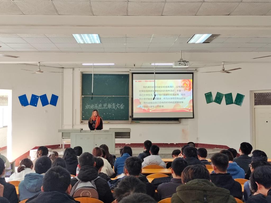 本网讯(员工记者 湛点)12月1日中午,在四教200教室,我系召开感恩教育大会。会议由秘书处夏书侨主持,系辅导员成观雄、燕梦蝶、朱亦丹出席,我系全体受资助员工参加。