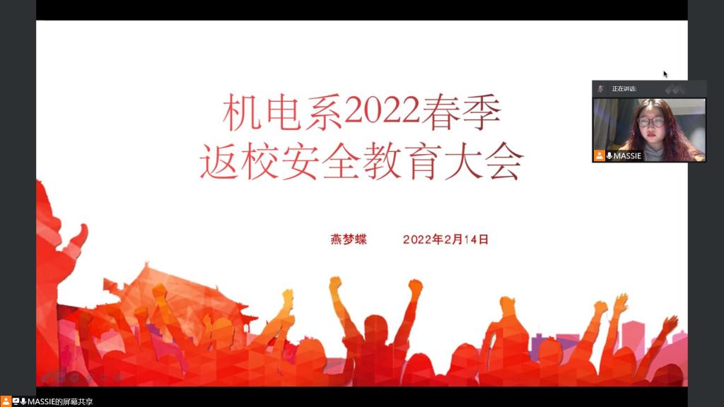 本网讯(员工记者 湛点)2月14日晚,在腾讯会议平台上,我系召开春季返校安全教育会议,会议由辅导员主持,我系各级全体同学参加。