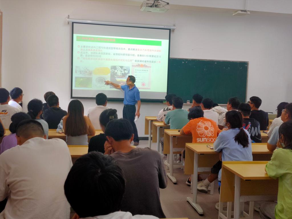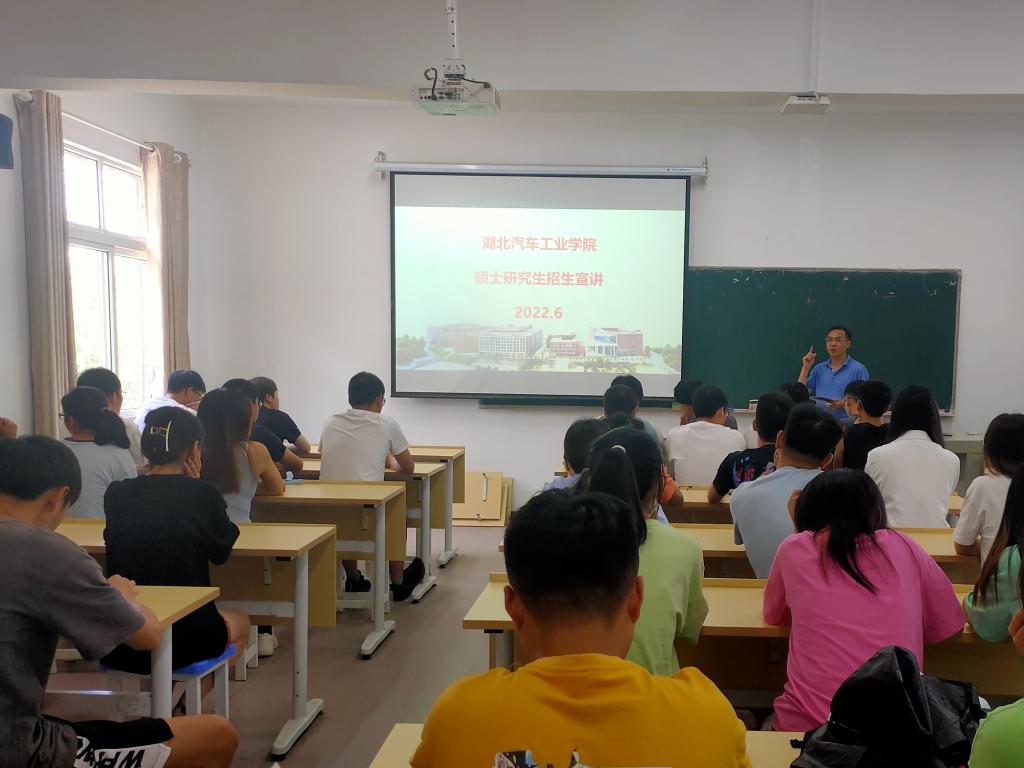 宣讲会上,材料科学与工程学院硕士生导师罗成教授以“要不要考研?”、“考研选择什么专业?”两个问题开场,阐述了考研的益处和当前汽车行业的发展前景,并围绕“特色专业”、“团队力量”、“科研成果”、“合作对象”、“奖助体系”、“生活条件”六个方面对湖北汽车工业学院进行介绍,带领同学们深入了解该院的发展历程、招生专业、科研平台和就业与职业发展。最后,他向同学们展示了该院的研究生选拔标准和人才培养计划,鼓励同学们积极报考、继续学习,用知识武装头脑,用实践开拓未来。