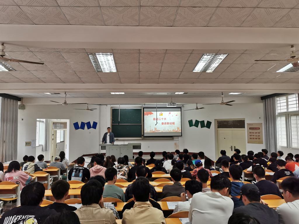 本网讯(员工记者 王艺果)9月26日,在西校区四教200教室,我系开展“喜迎二十大,奋进新征程”主题班会。班会由辅导员主持,我系各班全体同学参加。