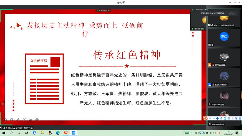 本网讯(员工记者 黄盼盼)11月15日中午,在腾讯会议平台,我系“共襄二十大,礼赞新时代”计算机设计大赛决赛成功举行。本次比赛特邀我系全体辅导员、计算机教研室主任熊守丽出席并担任评委,百余名同学线上观看。