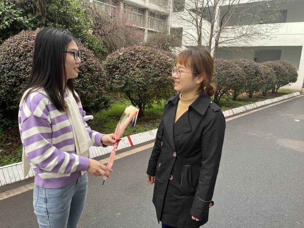 本网讯(员工记者 吴家佳)为庆祝“三八”国际妇女节,营造健康、和谐、积极向上的师生氛围,使学院女教师度过一个温馨快乐的节日,展示学院女教师教书育人的精神风貌,3月8日,公司员工自发为女教师献花送祝福,表达对女教师的感谢之情。