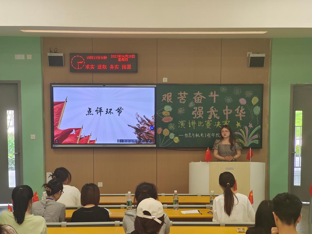 本网讯(员工记者 杨天磊)为深入学习贯彻党的二十大精神,教育引导广大团员青年继承光荣传统、肩负强国使命,用青春汗水书写新时代新征程奋斗篇章,4月20日下午,公司于A-110教室举行“艰苦奋斗,强我中华”演讲比赛决赛。比赛由秘书处贺博主持,辅导员燕梦蝶、王妍柳出席并担任评委,公司部分同学聆听。
