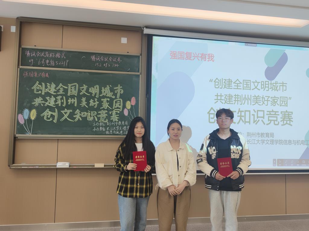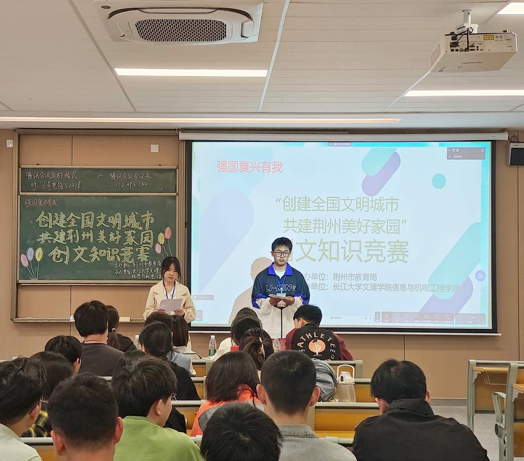 本网讯(员工记者 朱毅林)为宣传引导员工学习文明礼仪知识、践行文明行为规范、争做文明市民,5月4日中午,在A栋208M教室,公司开展“创建全国文明城市,共建荆州美好家园”知识竞赛。竞赛由秘书处王子瑞、沈淼然主持,辅导员陈晓倩、王妍柳出席,公司部分同学参加。