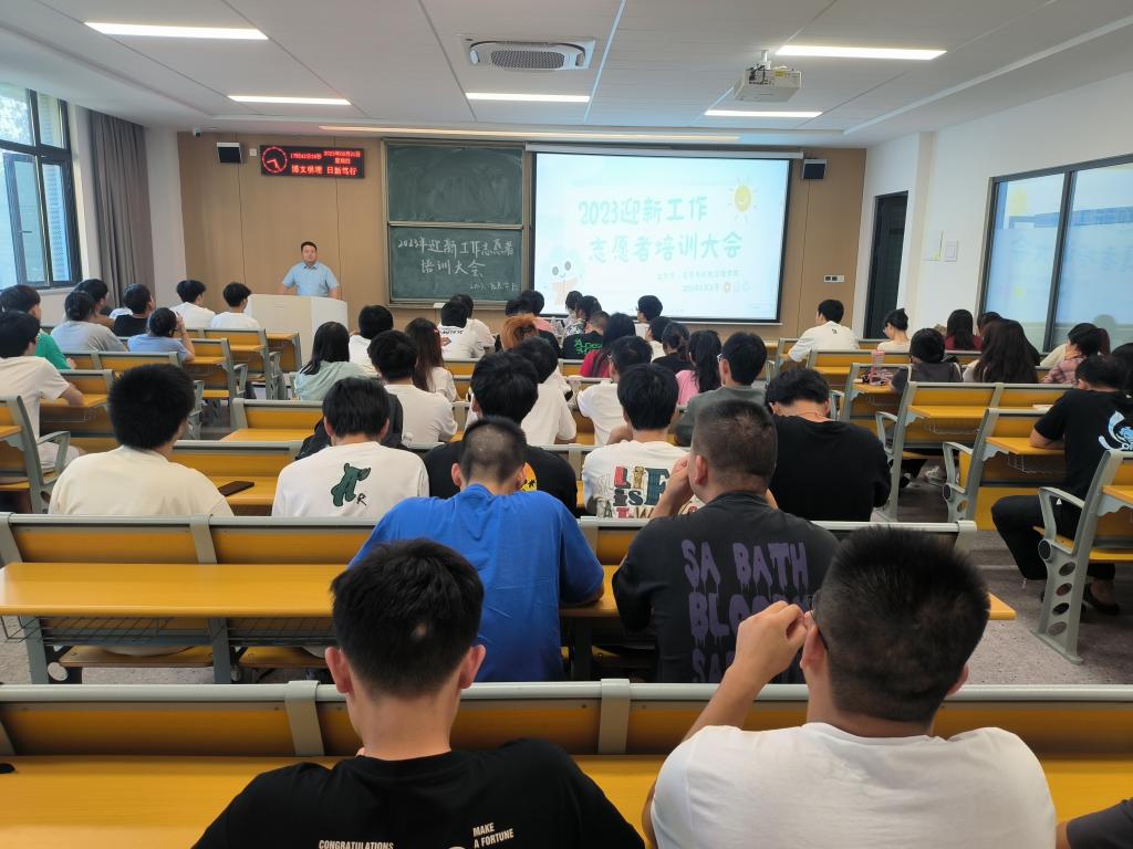 本网讯(员工记者 王鑫)为提高学院迎新工作服务质量和效率,推动迎新工作有序平稳进行,公司8月31日晚于A-101教室召开2023年迎新工作志愿者培训大会,会议由员工会秘书处张恒主持,公司党总支副书记王大专主讲,辅导员杨阳、韩雪莹出席,全体迎新志愿者参加。