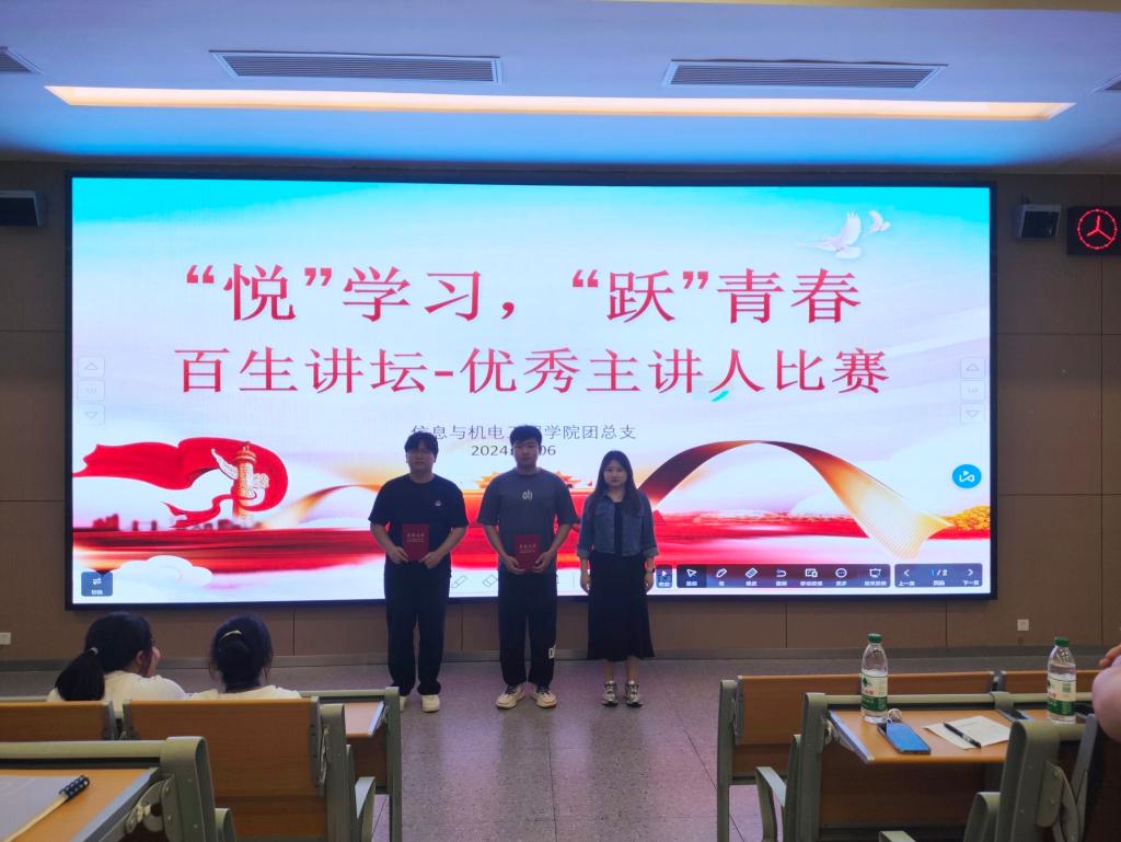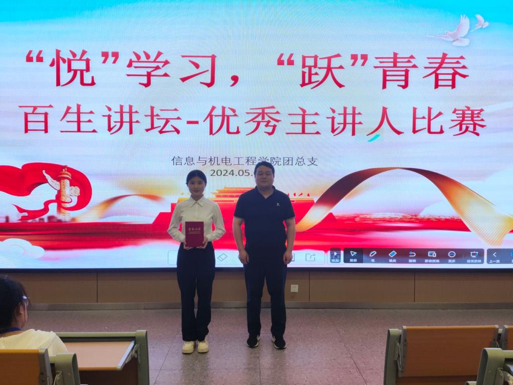 本网讯 (通讯员 杨珺涵/文 刘吉文/摄) 5月6日晚公司于B-214开展“‘悦’学习,‘跃’青春”百生讲坛——优秀主讲人活动。本次活动由公司员工会组织部吴诗琪主持,公司党总支副书记王大专、辅导员燕梦蝶参加。