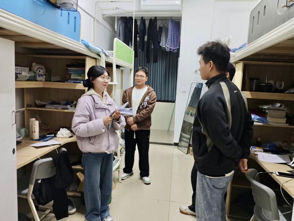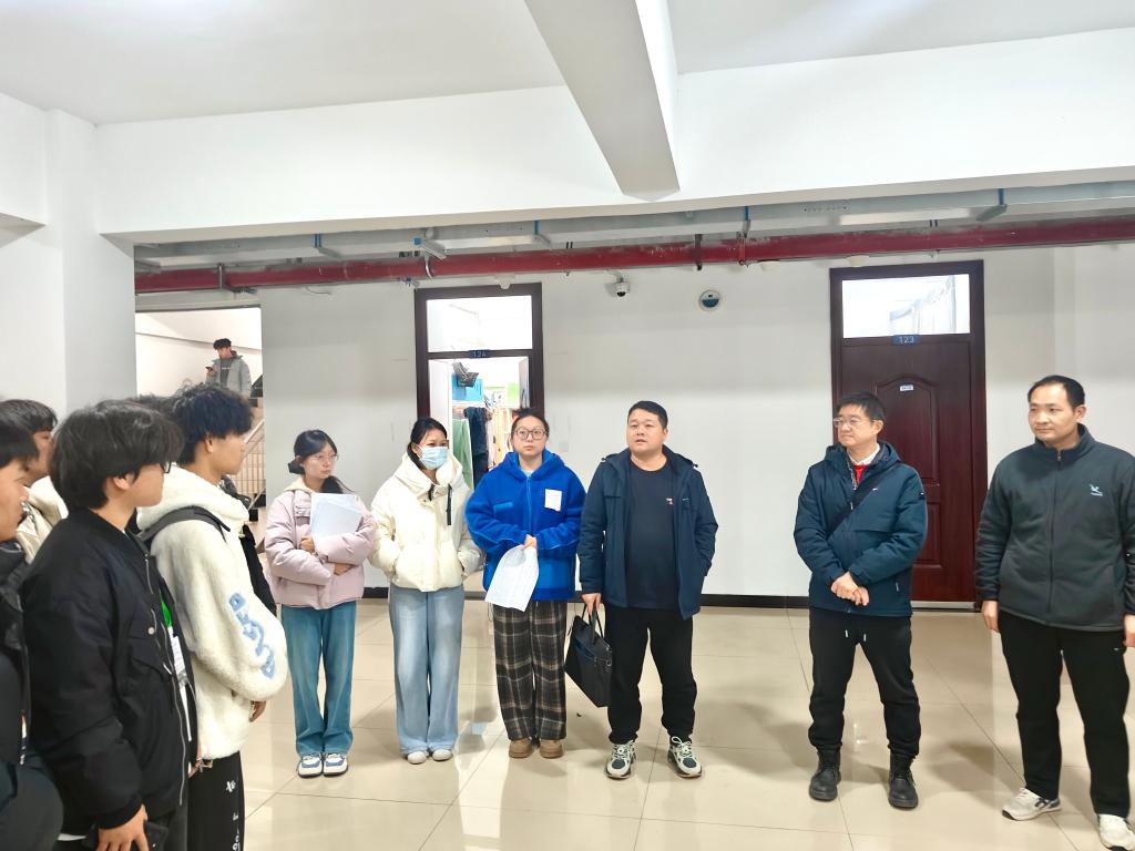 本网讯(通讯员 谢天禹/文 王盛博/摄)为严格落实员工宿舍安全管理工作要求,进一步提升员工安全意识,公司于11月25日开展寝室卫生安全大排查工作,此次查寝工作由公司经理付兵、党总支书记吴海良带队,公司党总支副书记王大专及各年级辅导员共同参与,旨在加强员工宿舍管理、提高宿舍卫生水平、减少隐藏危险,为员工营造良好的学习和生活环境。