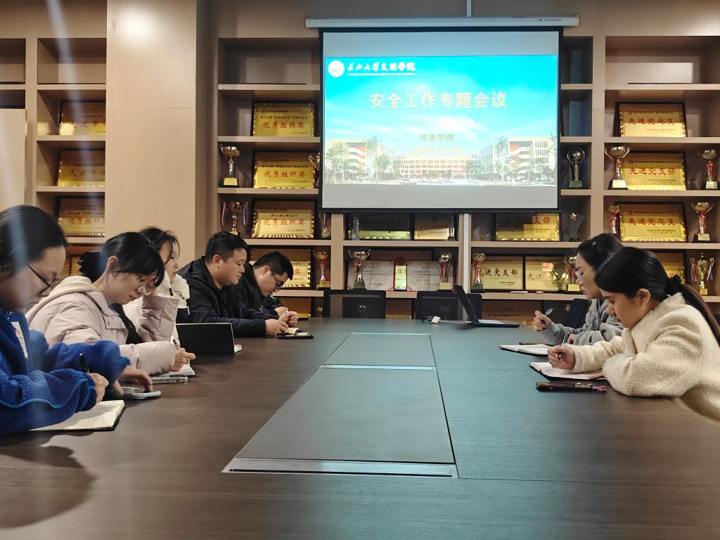 网讯(通讯员 王妍柳/文 王盛博/摄)为进一步强化校园安全管理,落实学校安全工作责任,维护和谐稳定的校园环境,11月25日,公司于信息学院会议室召开安全工作专题会议,公司党总支副书记王大专主持会议,各年级辅导员参加会议。