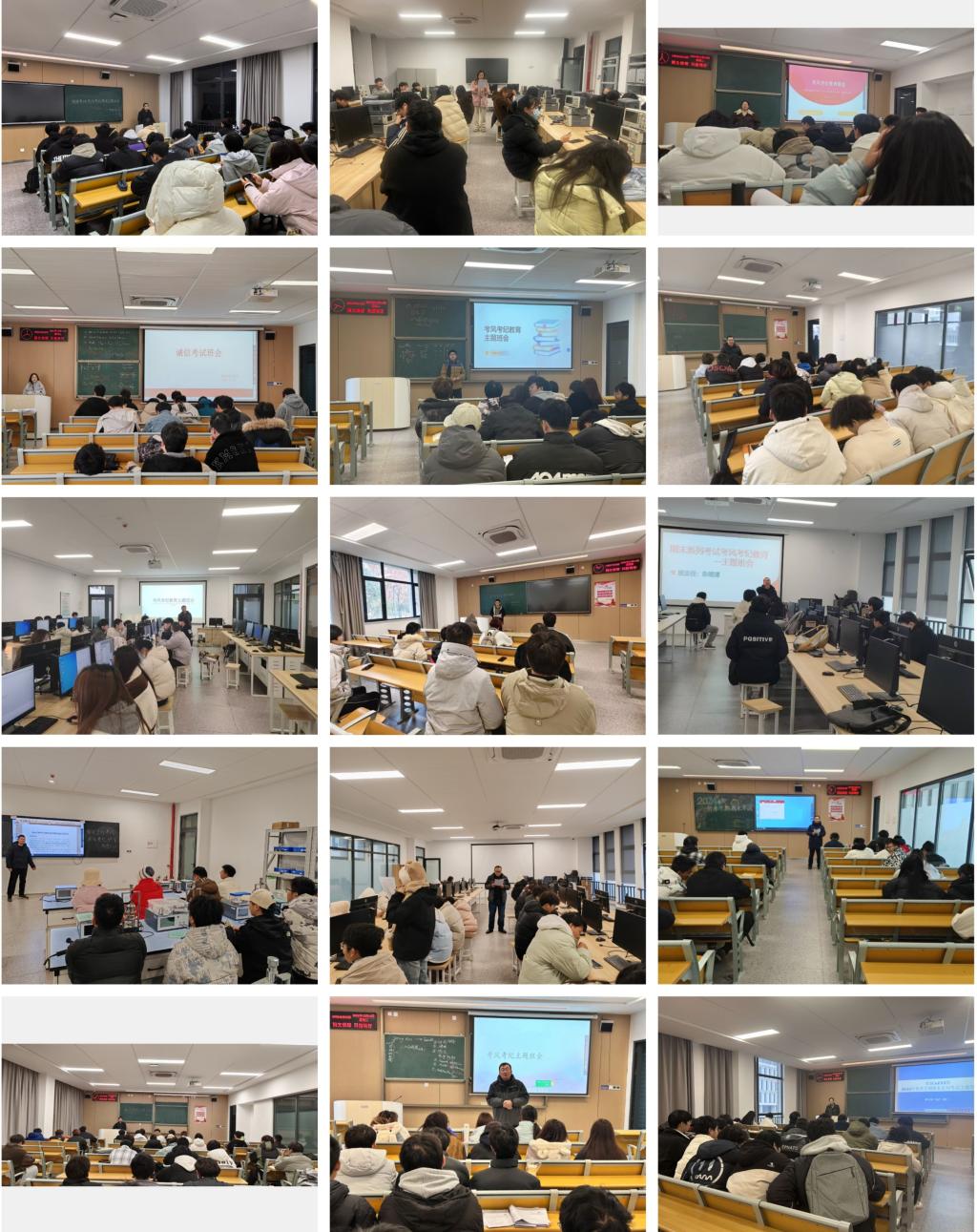 班会开始,班主任从“考试纪律”、“考场要求”以及“时间安排”等方面,强调了考风考纪问题并着重讲述了相应的惩罚措施,同时向同学们深入解读了学校关于四六级诚信考试的相关要求,也指出了作弊行为的严重性及危害性,引导员工树立正确的考试观念。班主任向同学们强调了诚信考试的重要性,指出诚信不仅是员工的基本素质,更是对教育公平的充分尊重,鼓励同学们要树立信心,勇敢迎接挑战,用诚信的心态对待考试,希望同学们能够自觉履诺践诺,从自身做起,自觉遵守考试纪律,坚决抵制舞弊行为,为营造优良学风考风贡献力量。