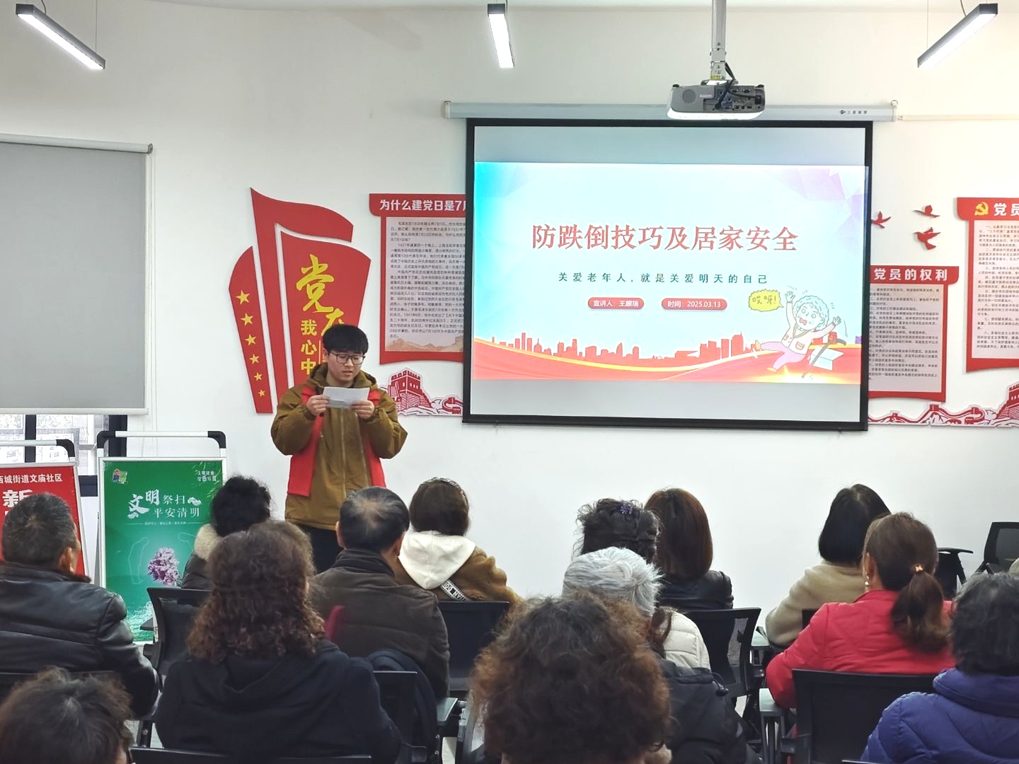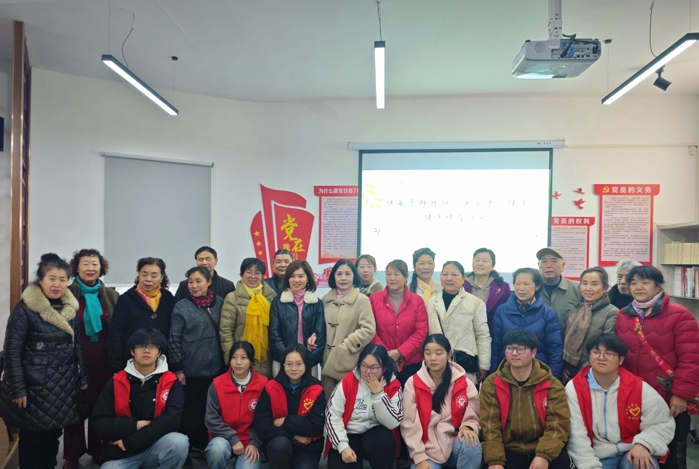 活动开始,主持人刘秀同学致开幕词,公司员工会3名志愿者代表依次上台进行宣讲。志愿者谭杰同学围绕“春季老年人养生”这一主题,从饮食、运动、疾病预防三个方面,为老人们详细讲解了如何在万物复苏的春季保持身体健康,他建议老人们春季饮食要清淡,多吃新鲜蔬果,并给老人们推荐了适合他们的春季运动方式,如太极拳、散步等,还贴心地提醒老人们要注意预防春季常见疾病;王麒瑞同学则将目光聚焦在老年人居家安全问题上,他通过生动的案例和现场演示,向老人们科普了防跌倒技巧,并重点讲解了规范用电、用火、用水的重要性,提醒老人们要提高安全意识,避免居家生活中受到不必要的伤害;陈媛媛同学从心理健康的角度为老人们讲解了如何调节情绪、保持乐观心态,她列举了老年人常见的心理问题,如孤独感、焦虑感等,并提供了切实可行的解决方法,鼓励老人们积极面对生活,保持身心健康。期间,志愿者们和老人们热情沟通,并耐心解答他们的疑惑。活动结束后,大家一起合影留念,共同记录这温馨时刻。