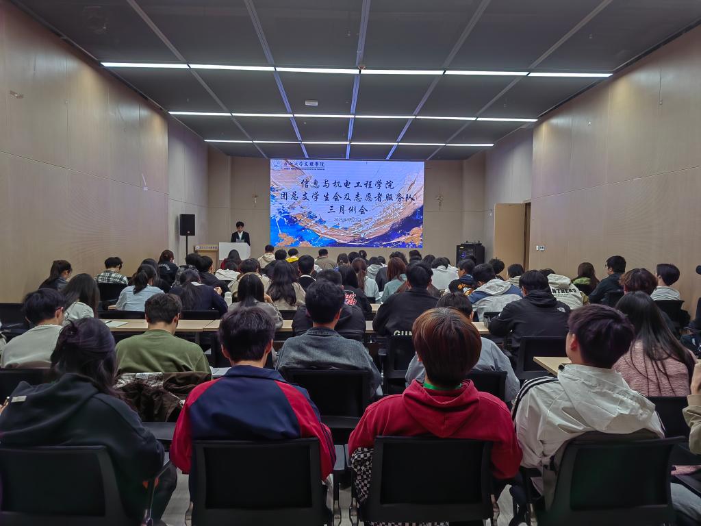 本网讯(通讯员 谢天禹 杨珺涵/文 吴祎/摄)3月27日,信息学院第二十届团总支员工会及志愿者服务队在图书馆103会议室召开三月工作例会,本次例会由院员工会综合办公室张泽玮主持,院全体团学组织干事参加会议。
