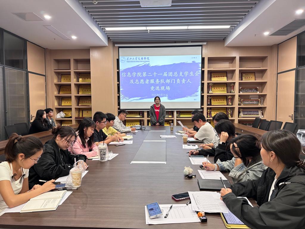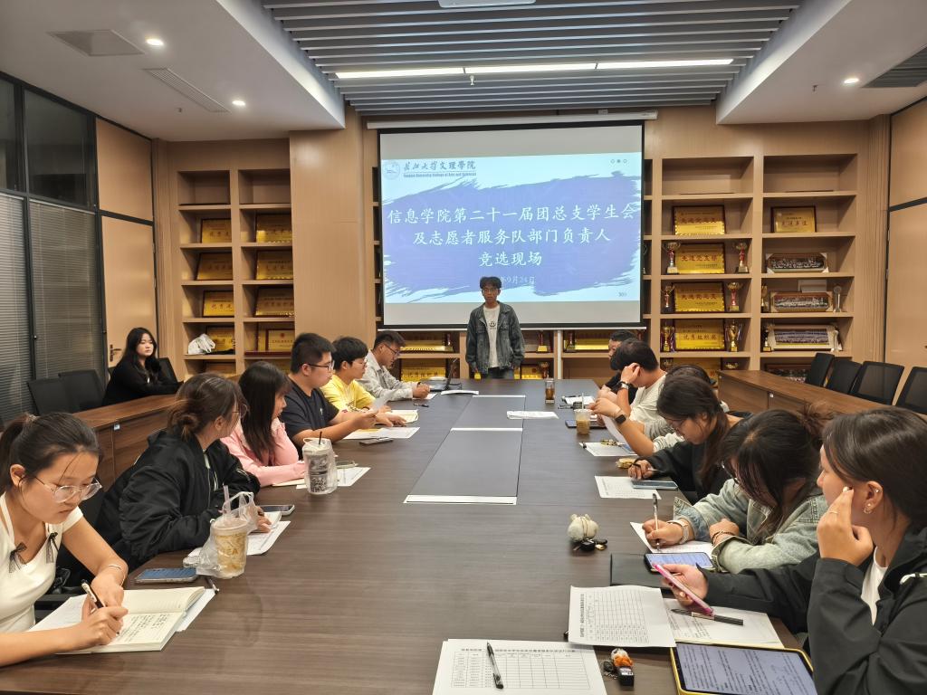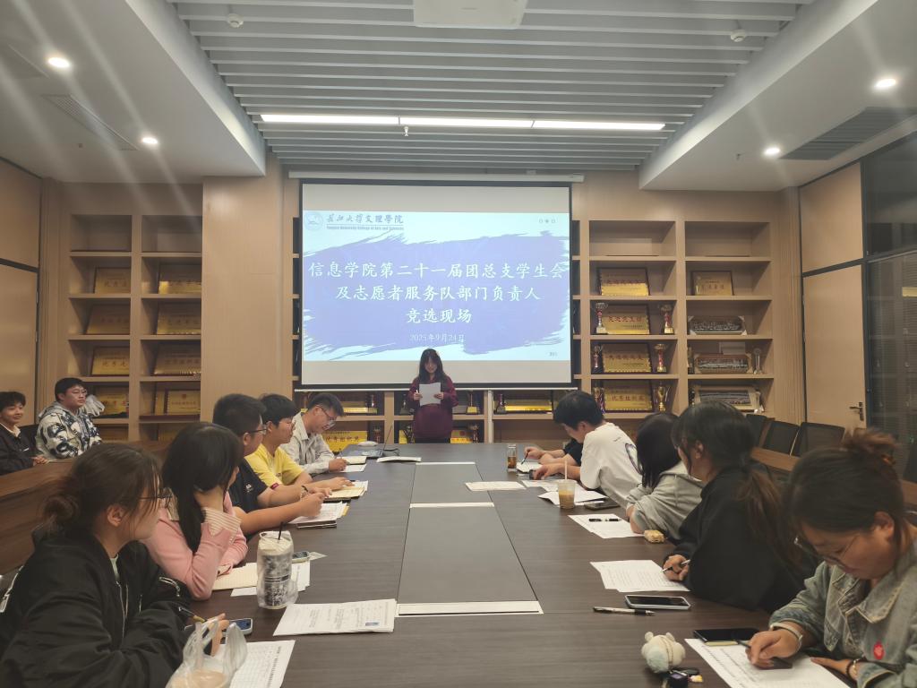本网讯(通讯员 鲁盼)9月24日晚,学院第二十一届团总支员工会及志愿者服务队部门负责人竞选在图书馆510会议室举行。本次竞选旨在选拔一批能力突出、作风扎实的员工骨干,为学院团学工作注入新活力。党总支副书记王大专老师,第二十届团总支员工会主席团成员及第二十一届团总支员工会主席团成员出席活动并担任评委。