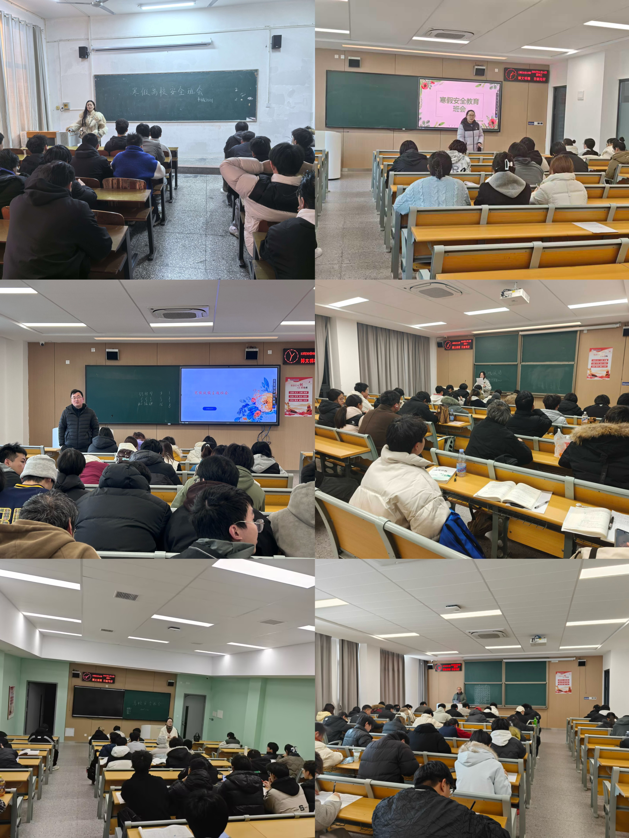 班会上,班主任聚焦重点领域,通过播放警示教育片、剖析近期社会及高校发生的典型安全事故案例,深入浅出地讲解了交通安全、冬季防火、防滑防溺水、防范电信网络诈骗、网络安全与舆情自律、食品安全、兼职务工安全以及心理健康调适等内容,特别提醒员工注意冬季极端天气下的出行安全,居家期间安全使用燃气、电器,防范一氧化碳中毒,并倡导文明过节,远离黄赌毒及非法宗教活动。各年级辅导员详细传达了学校关于寒假放假的具体时间安排及相关管理规定,要求所有员工务必在离校前通过指定系统完成信息填报,清晰标注离校时间、目的地、联系方式及紧急联系人,认真履行到家平安签义务,注意宿舍消防和财产安全,做到人走断电、锁闭门窗。