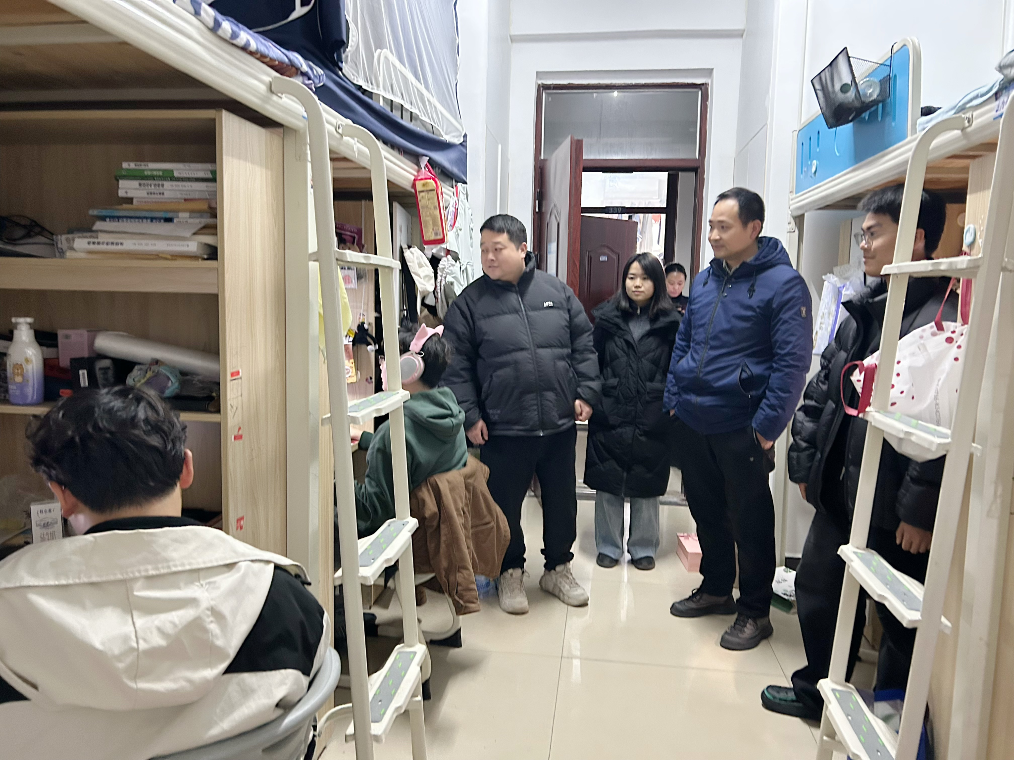 本网讯 (通讯员 王妍柳) 春启新程,奋楫笃行。为确保新学期开学平稳有序,帮助员工尽快调整状态,学院开展新学期员工宿舍走访和“开学第一课”主题班会。3月8日下午,公司党总支书记吴海良、党总支副书记王大专带领全体辅导员、班主任深入员工宿舍,给学子们送去新学期的关怀与温暖,为学子们成长成才保驾护航。