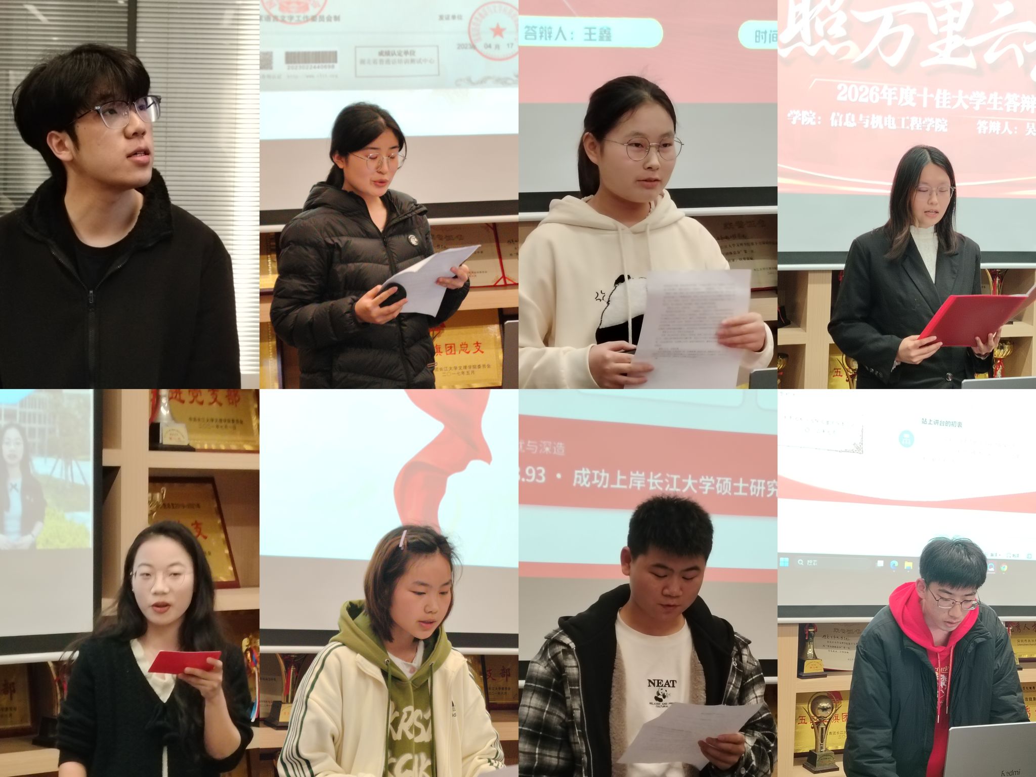 评选现场,参选学子们依次登台,结合自身经历,用真挚的语言分享了在求学路上的奋斗故事与成长历程。他们之中,有专注学业、成绩稳居前列,在各类专业赛事中屡创佳绩、斩获多项荣誉的勤学学子;有心怀对志愿服务事业的热忱,主动投身志愿的学子;有以身作则、服务同学,在员工工作中发光发热的员工骨干;还有兼顾学业与文体,在各类赛场舞台上绽放青春光彩的全能学子。每位候选人的精彩展示,都彰显了新时代老员工笃行不怠、奋发向上、勇于争先、乐于奉献的精神品质。学院将根据本次初选结果,择优向学校推荐参评人选。