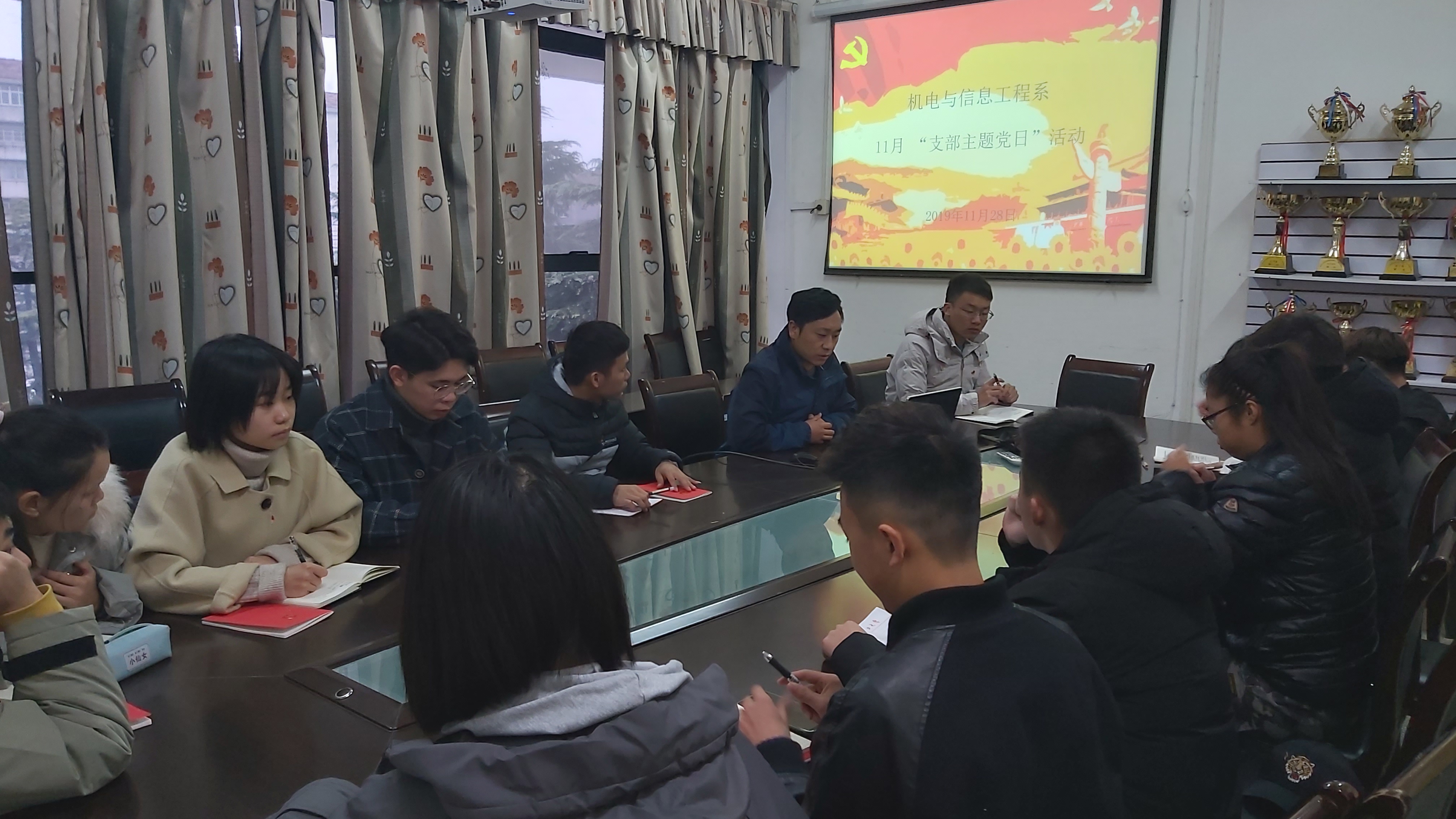 本网讯(员工记者 刘文婷)11月28日下午,在我系会议室,我系员工党支部开展11月份第二次“支部主题党日”活动。系党总支副书记辛裕主持,15名员工党员一同参加。