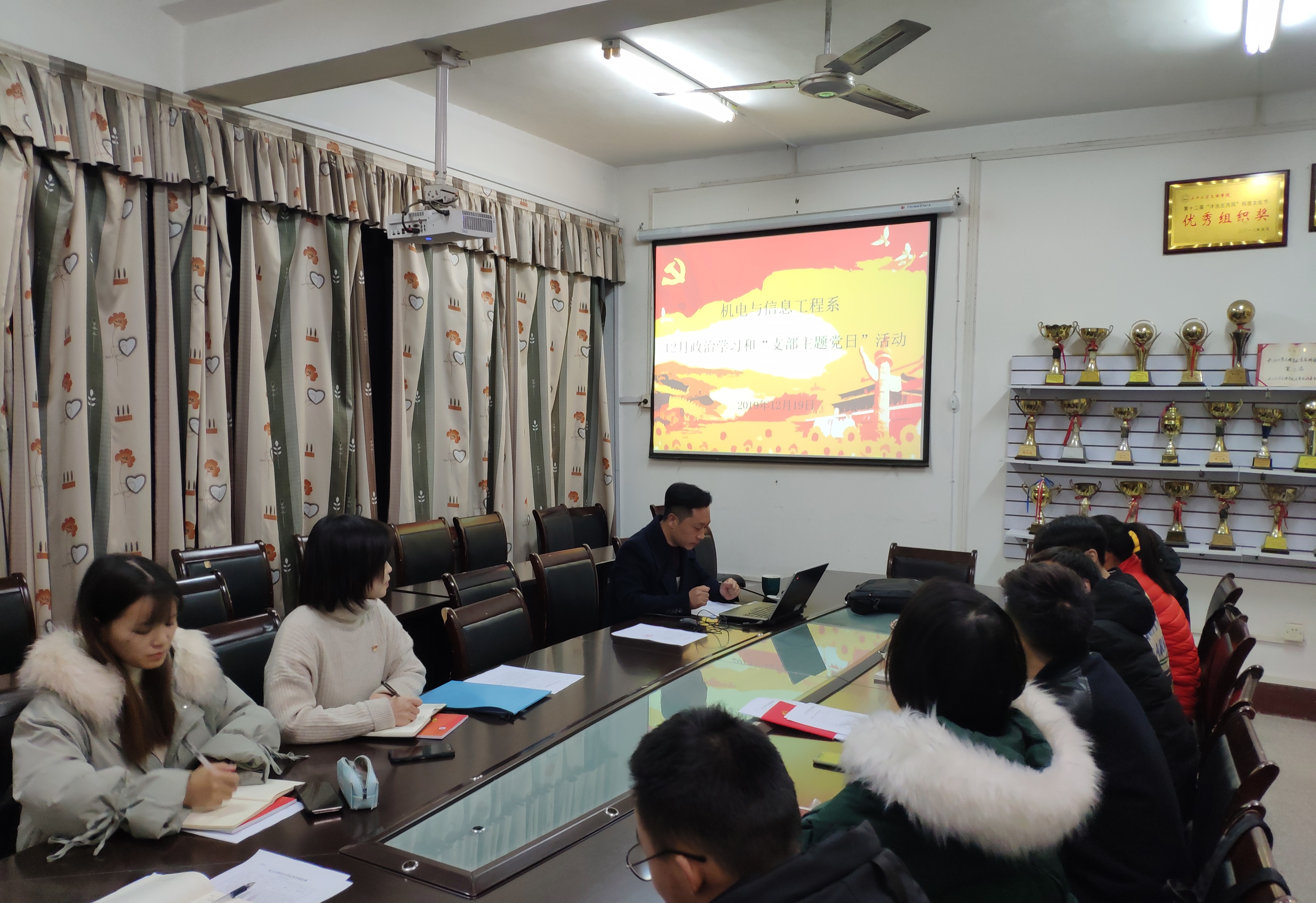 本网讯(员工记者 刘文婷)12月19日晚,我系员工党支部在会议室开展12月份政治学习和“支部主题党日”活动。系党总支副书记辛裕主持,15名员工党员全员参加。
