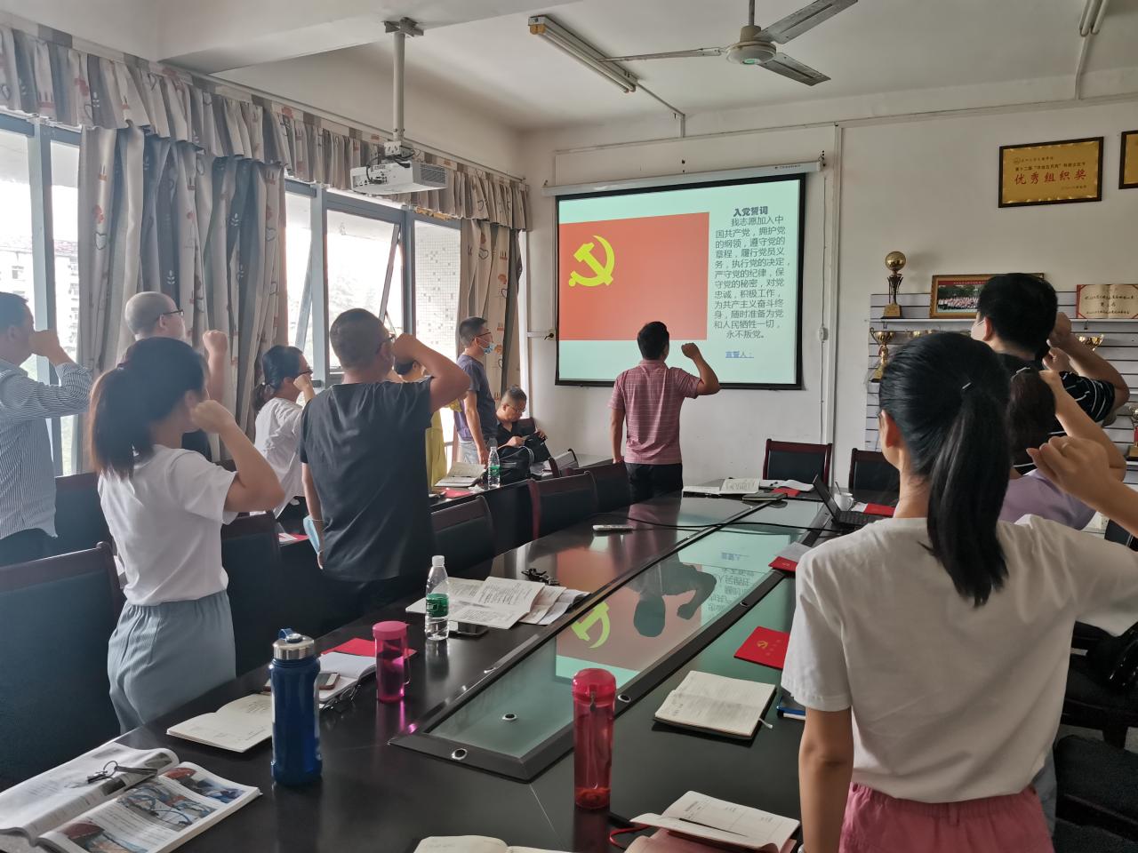首先在支部书记的带领下,所有老师重温入党誓词,然后政治学习阶段,由教工党支部书记呙明辉带领大家集体学习了习近平在十九届中央政治局第二十一次集体学习的讲话,习近平回信寄语广大高校毕业生,习近平在十八届中央政治局第二十八次集体学习时的讲话等5项内容。