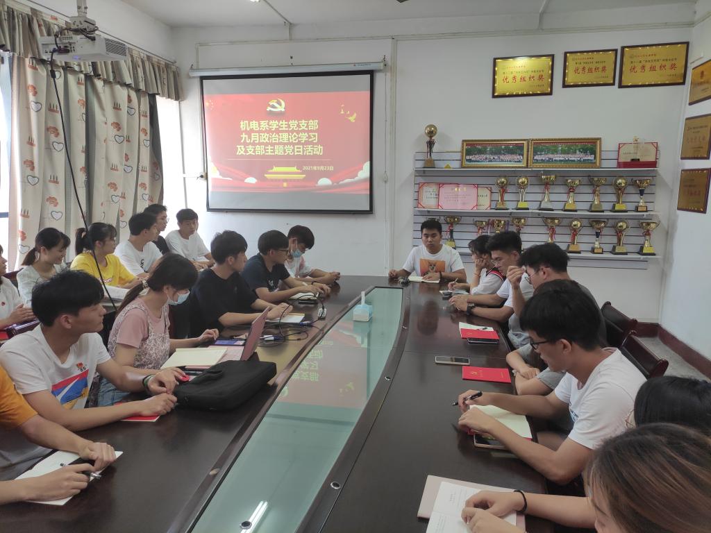 本网讯(员工记者 谢丽娇)9月23日下午,在机电系会议室,我系员工党支部开展9月份政治学习和“支部主题党日”活动。会议由谢丽娇同志主持,员工党支部书记成观雄出席,支部全体党员参加。