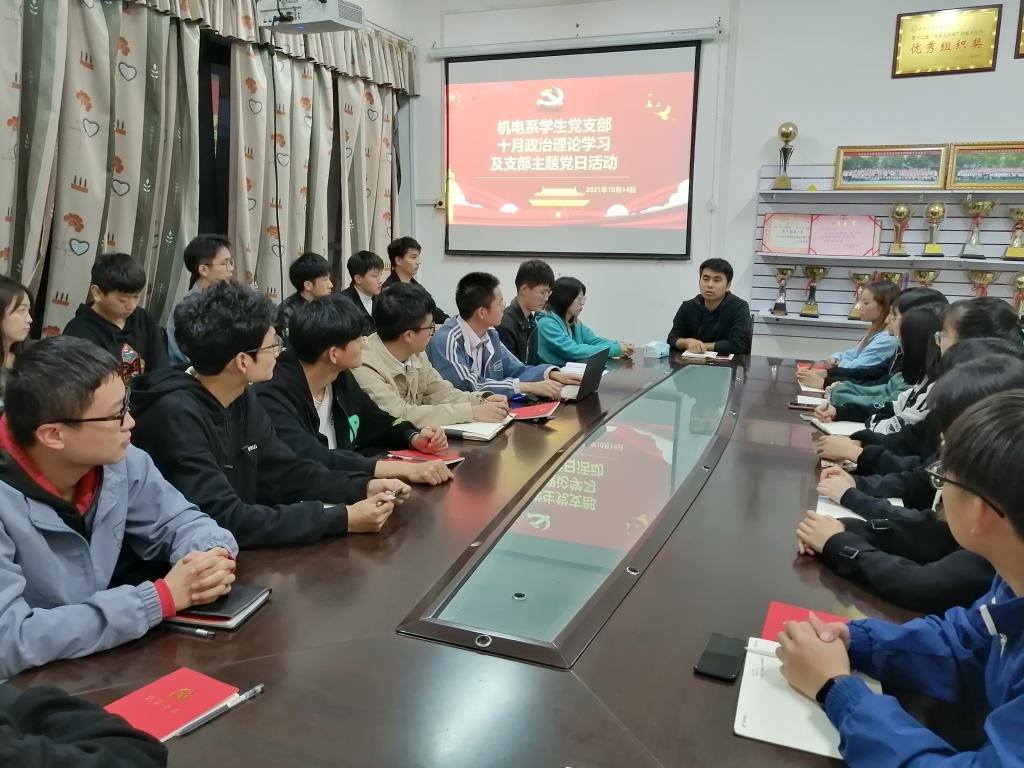 本网讯(员工记者 谢丽娇)10月14日下午,在机电系会议室,我系员工党支部开展10月份政治学习和“支部主题党日”活动。会议由黄汛同志主持,员工党支部书记成观雄出席,支部全体党员参加。