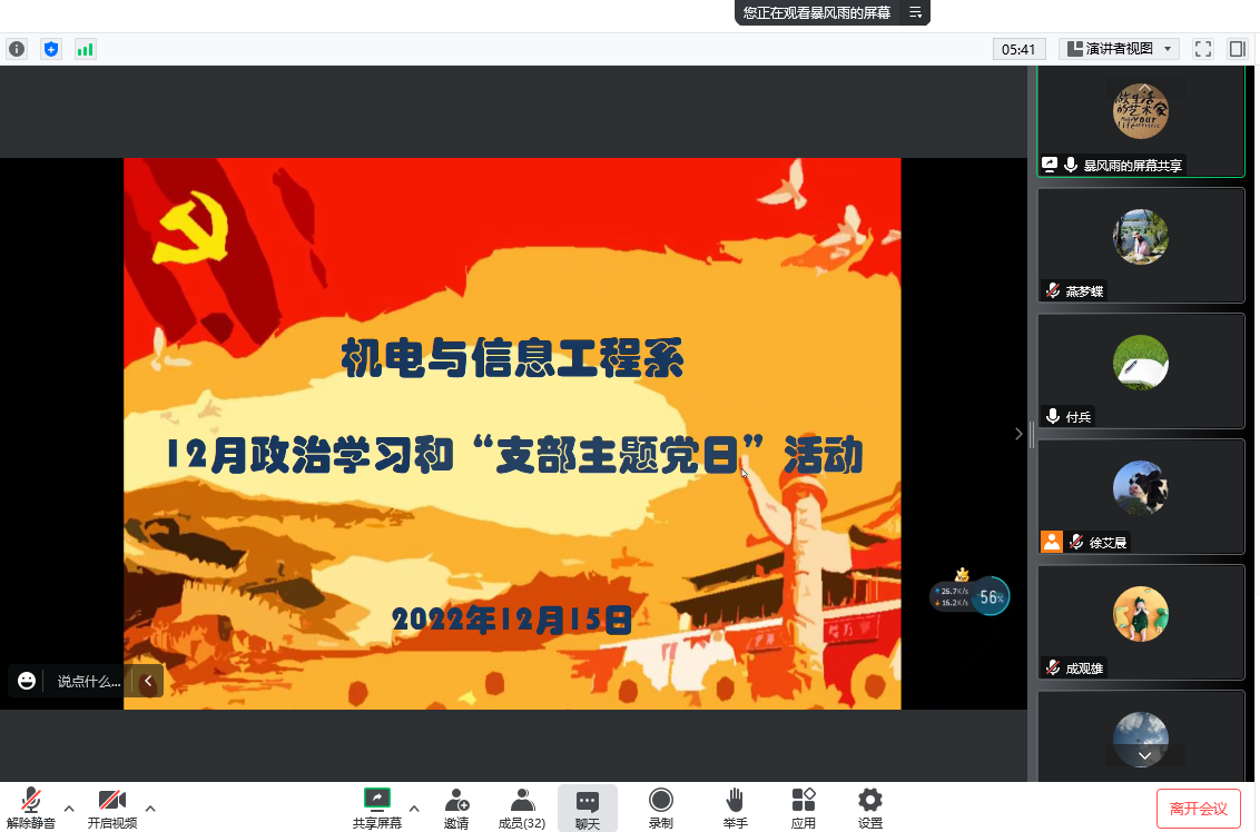 本网讯(通讯员 燕梦蝶)12月15日下午,公司教工党支部在会议室开展12月份政治学习和“支部主题党日”活动。会议由教工党支部书记呙明辉主持,支部全体教职工参加。