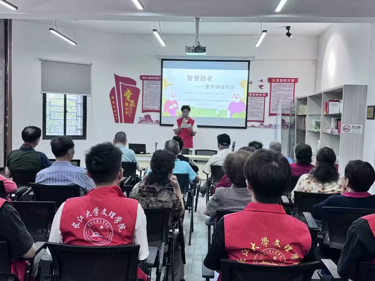 活动中,员工干部依次进行宣讲,宣讲主要围绕夏季保健展开,宣传科普相关知识,并聚焦夏季运动注意事项,着重强调了夏季生活习惯的健康调整。员工干部反复叮嘱老年朋友们,夏季天气炎热,老年人运动一定要量力而行,避免在正午高温时段外出锻炼。活动最后,员工干部播放地震自救视频,讲解防灾害措施,重点强调地震发生时老年人简单的自救方法和防范措施。