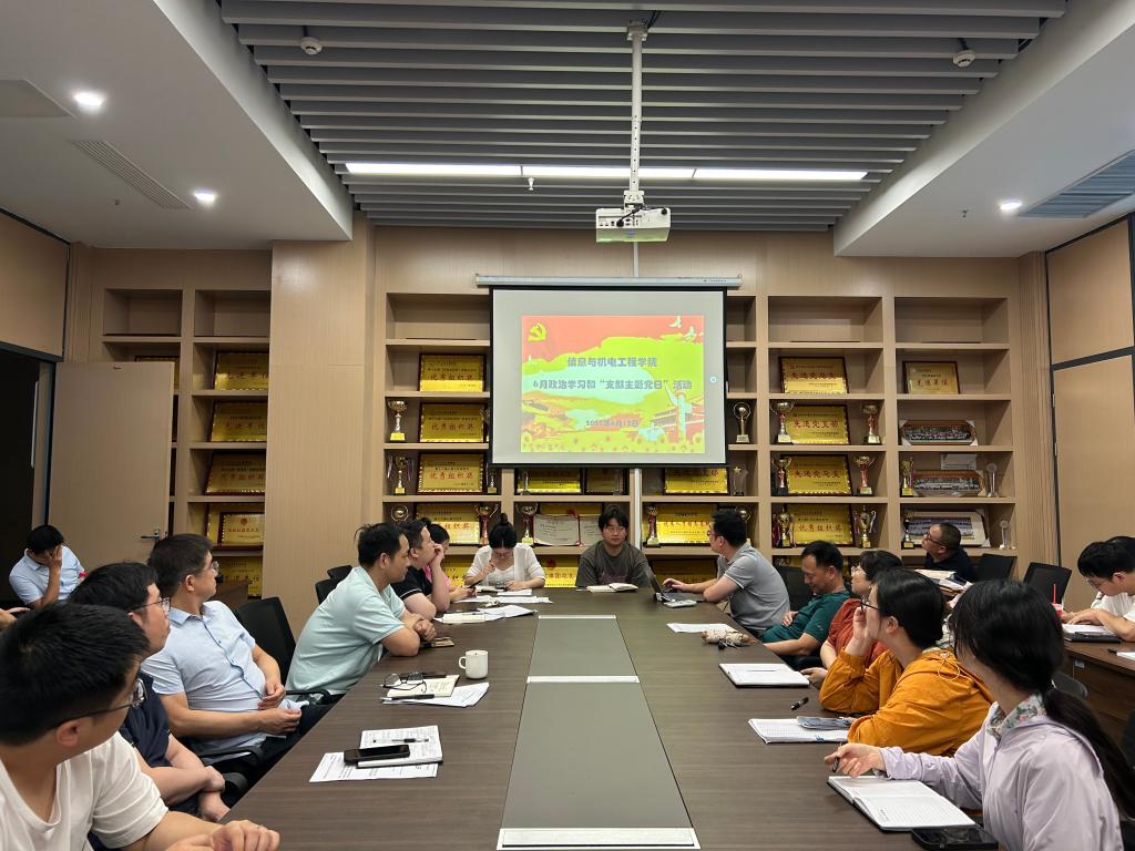 本网讯(通讯员 王妍柳)6月12日下午,学院教工党支部在信息学院会议室开展6月份政治学习和“支部主题党日”活动。会议由院教工党支部书记呙明辉主持,支部全体教职工参加。