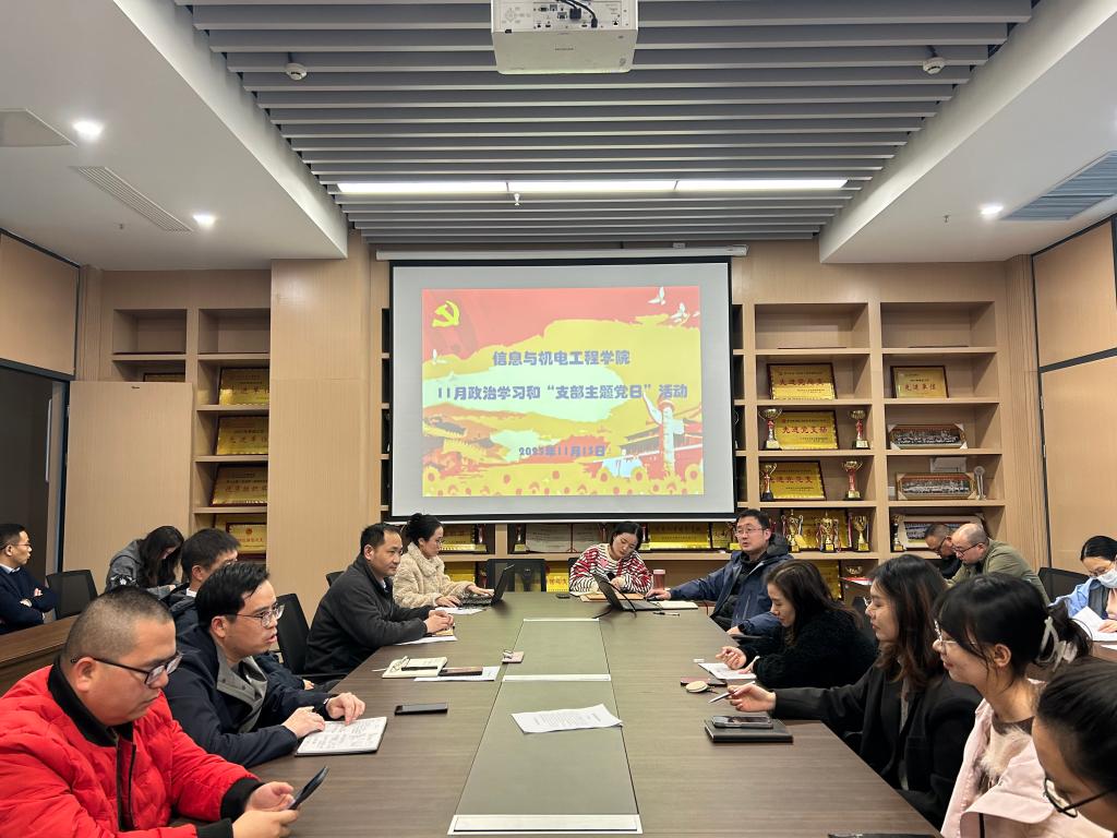 本网讯(通讯员 王妍柳)11月13日中午,学院教工党支部在信息学院会议室开展11月份政治学习和“支部主题党日”活动。会议由院教工党支部书记呙明辉主持,全体教职工参加。