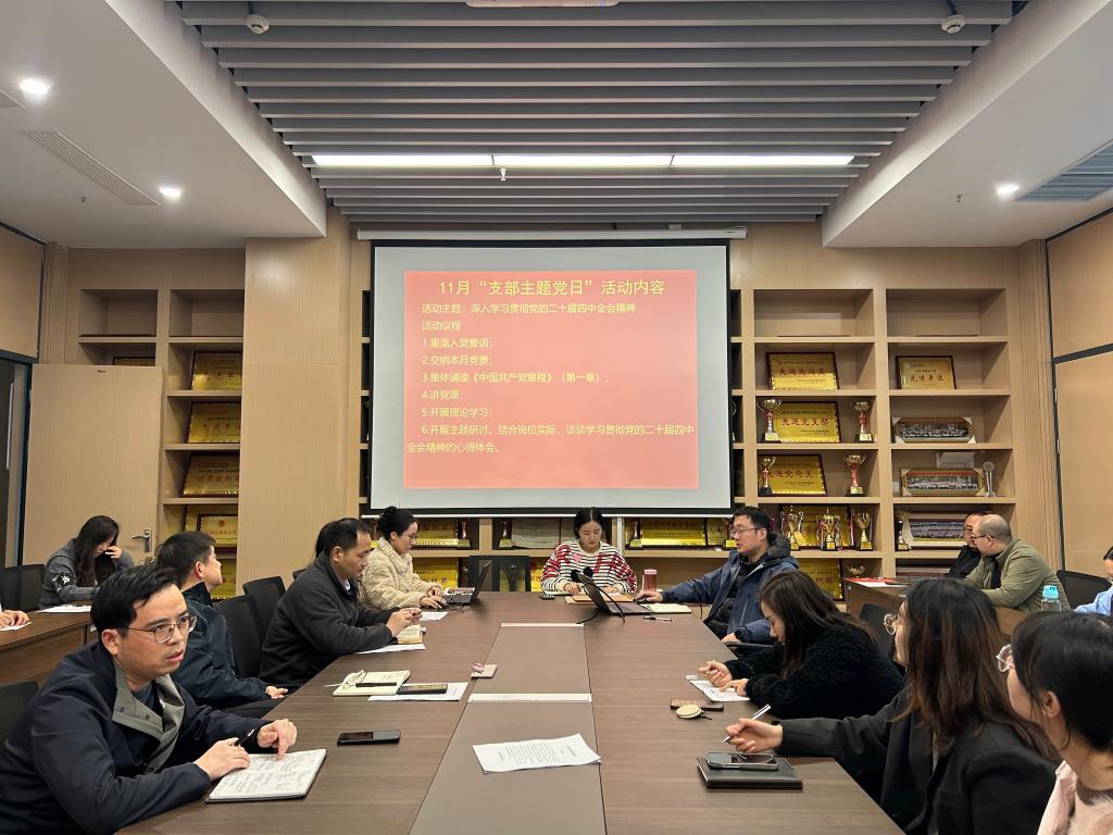 在支部主题党日活动中,全体党员重温入党誓词、交纳党费,集体学习《中国共产党章程》(第一章);学习习近平关于《中共中央关于制定国民经济和社会发展第十五个五年规划的建议》的说明;学习中国共产党第二十届中央委员会第四次全体会议公报;学习中共中央举行新闻发布会解读党的二十届四中全会精神;学习王忠林主持召开省委常委会(扩大)会议上所强调的内容:全力抓好全会精神的学习、宣讲、宣传,迅速掀起学习党的二十届四中全会精神热潮,推动全会精神在湖北不折不扣落地生根;学习王忠林主持研究推进省属高校“双一流”建设工作中所强调的内容:坚定信心决心、突出优势特色、聚力攻坚克难,全力推动“双一流”建设实现突破,更好服务国家战略和支点建设;学习习近平在中共中央召开的党外人士座谈会上发表的重要讲话等内容。