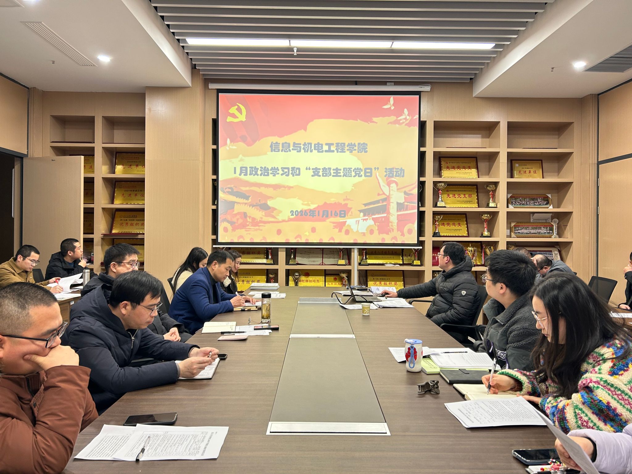 本网讯(通讯员王妍柳)1月16日下午,学院教工党支部在信息学院会议室开展1月份政治学习。会议由院教工党支部书记呙明辉主持,全体教职工参加。