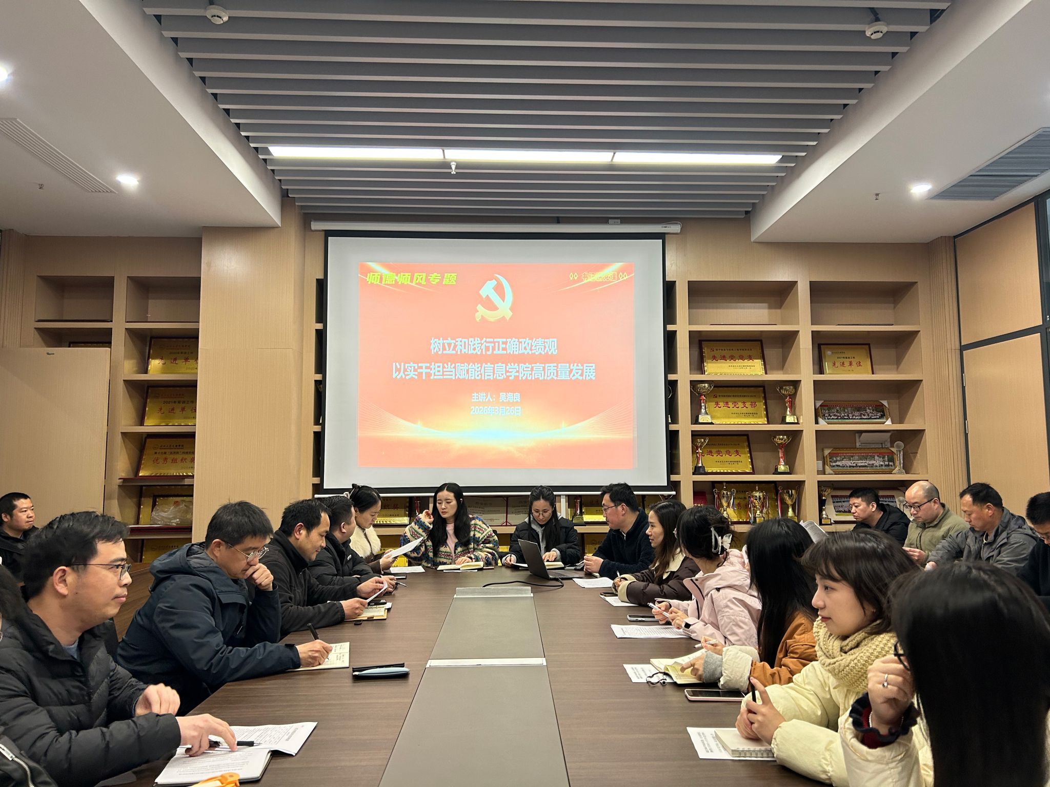 结合师德师风教育,党总支书记吴海良以《树立和践行正确政绩观 以实干担当赋能信息学院高质量发展》为题,讲授“树立和践行正确政绩观学习教育”专题党课。他从“什么是正确的政绩观”“为什么要树立正确政绩观”“如何以正确政绩观引领学院高质量发展”三个方面展开阐述,强调全体党员教师要始终坚持以师生为中心的发展思想,把立德树人成效作为检验工作的根本标准,力戒形式主义、官僚主义,立足岗位、真抓实干,在人才培养、团队建设、社会服务等中心工作中展现新作为,切实将学习教育成果转化为推动学院高质量发展的强大动力。