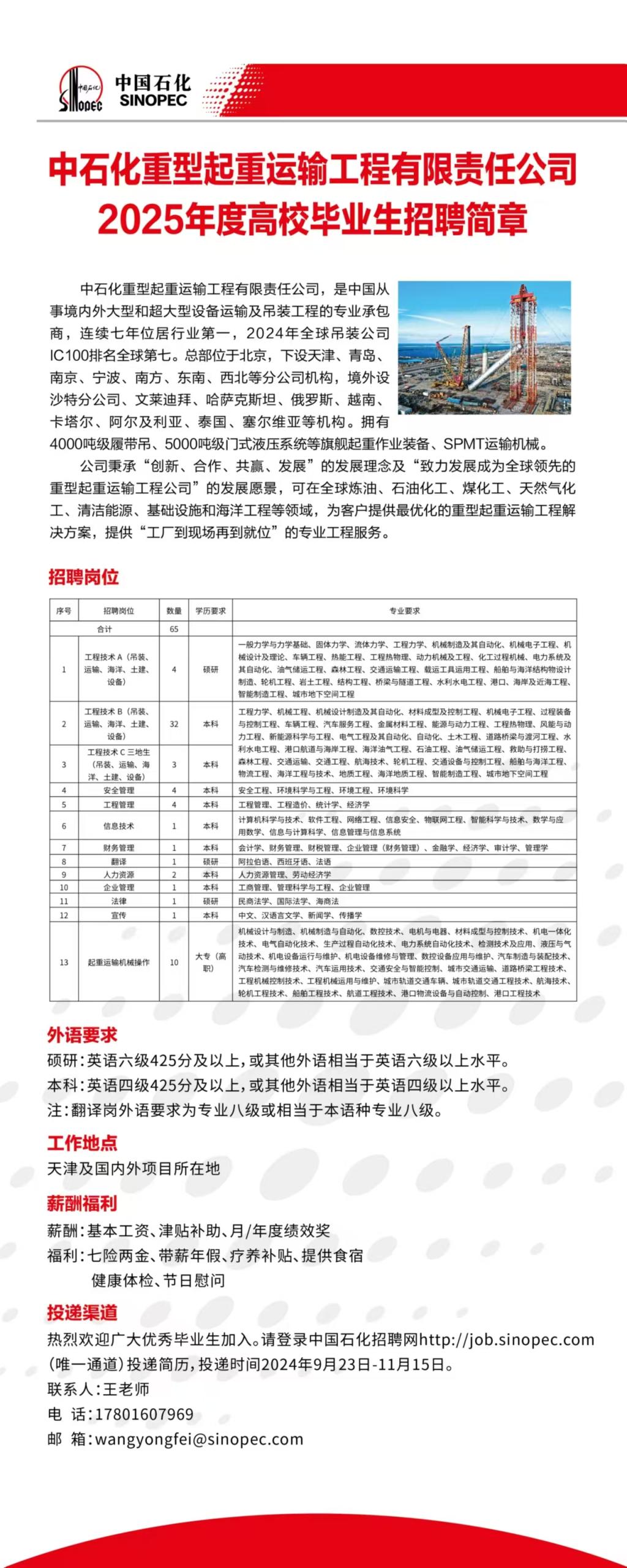 中石化重型起重运输工程有限责任公司招聘简章