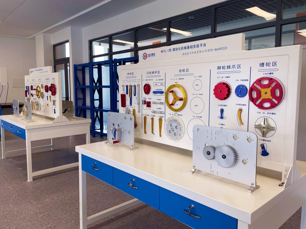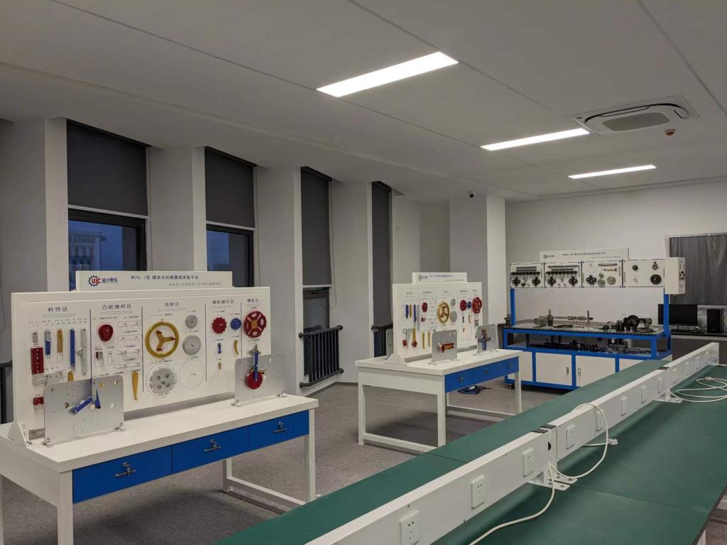 机械原理实验室是与机械制造及其自动化专业核心课程《机械原理》、《机械设计》相配套的实验室,主要用作机械及相关专业员工进行机械结构原理与设计的学习与创新实践,配有模块化机械基础实验平台、模块化机械性能测试实验平台,为员工学习专业技能提供了一个专业、舒适的学习环境。员工可利用该实验室进行机械结构的学习探索,利用所学知识进行创新设计,并可通过师生互动的公司产品模式,与老师、同学共同讨论、共同学习,将理论教学与实践创新巧妙结合,让员工能够在毕业后的工作岗位上迅速适应专业技能的要求,形成扎实的专业素养与专业技能。此外,该实训室还可进行课题开发、上岗培训等校企合作项目,对助力提高教学质量、突出学院办学特色、增强员工就业竞争力有着显著的优势。