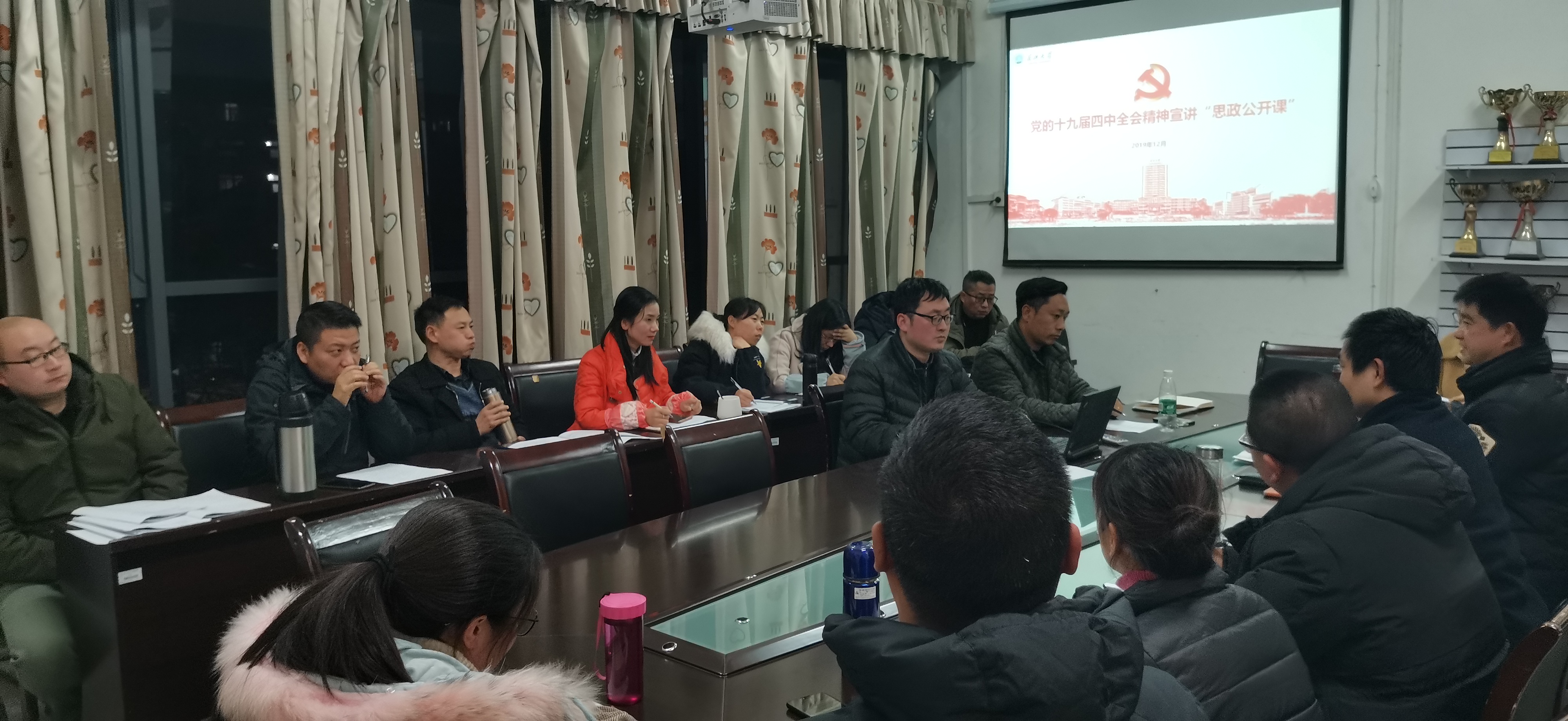 呙明辉强调,作为作为一名中共党员,要加强理论学习,学习贯彻党的十九届四中全会精神是当前和今后一个时期的重要政治任务。我们要深入贯彻四中全会精神,把全校师生的思想和行动统一到全会精神上来,为坚持和完善中国特色主义制度、推进国家治理体系和治理能力现代化,实现“两个一百年”奋斗目标、实现中华民族伟大复兴中国梦而努力奋斗。