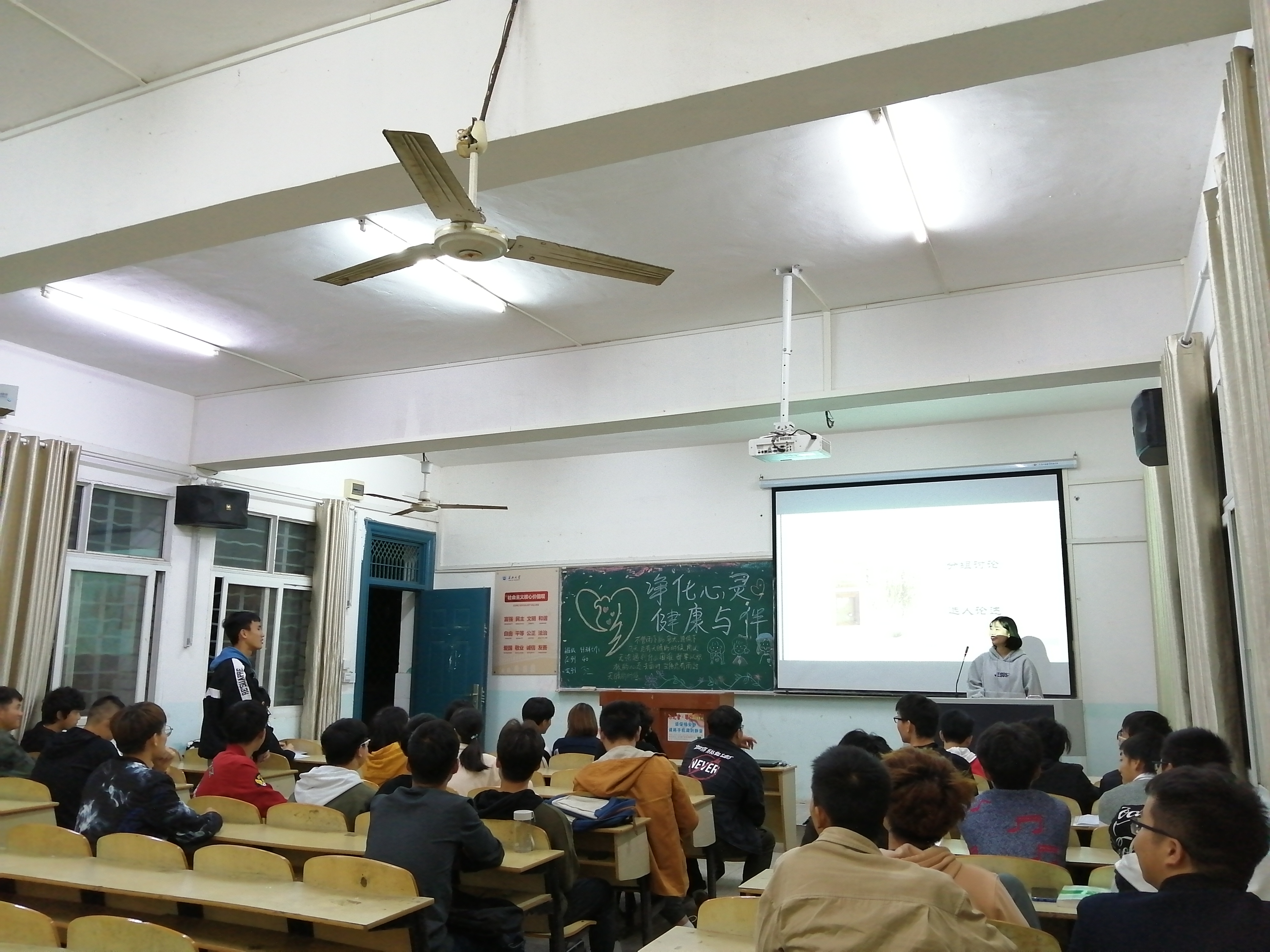 团课上,各班主持人通过PPT展示、视频放映的方式,向同学们普及心理健康知识,区分心理疾病和身体疾病,以真实案例说明心理疾病不仅带来身体上的不适,更多的是精神上的困扰,倡导大家要积极主动了解心理健康常规知识,学会自我诊断,面对问题,要敢于正视、积极寻求帮助、及时沟通。