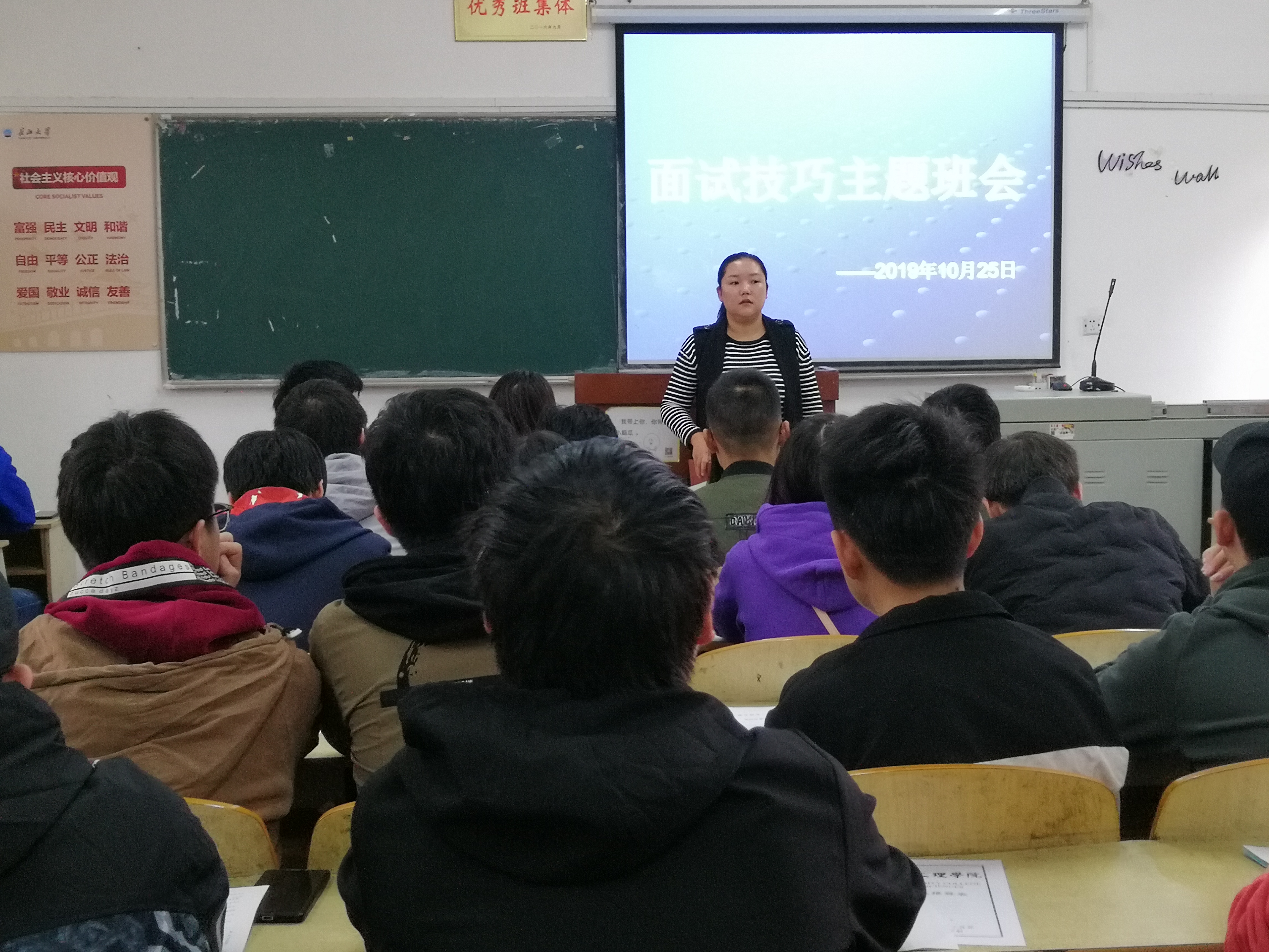 本网讯(员工记者 常伟)10月25日上午,我系在D2-205教室组织开展2020届部分专业毕业生面试技巧指导。班级辅导员王琳主讲,物联5161、计科5161全体同学参加。
